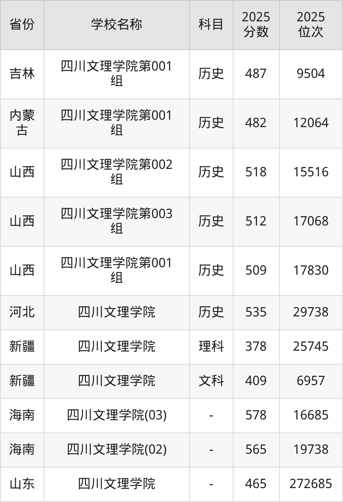 一、2025四川文理学院录取分数线