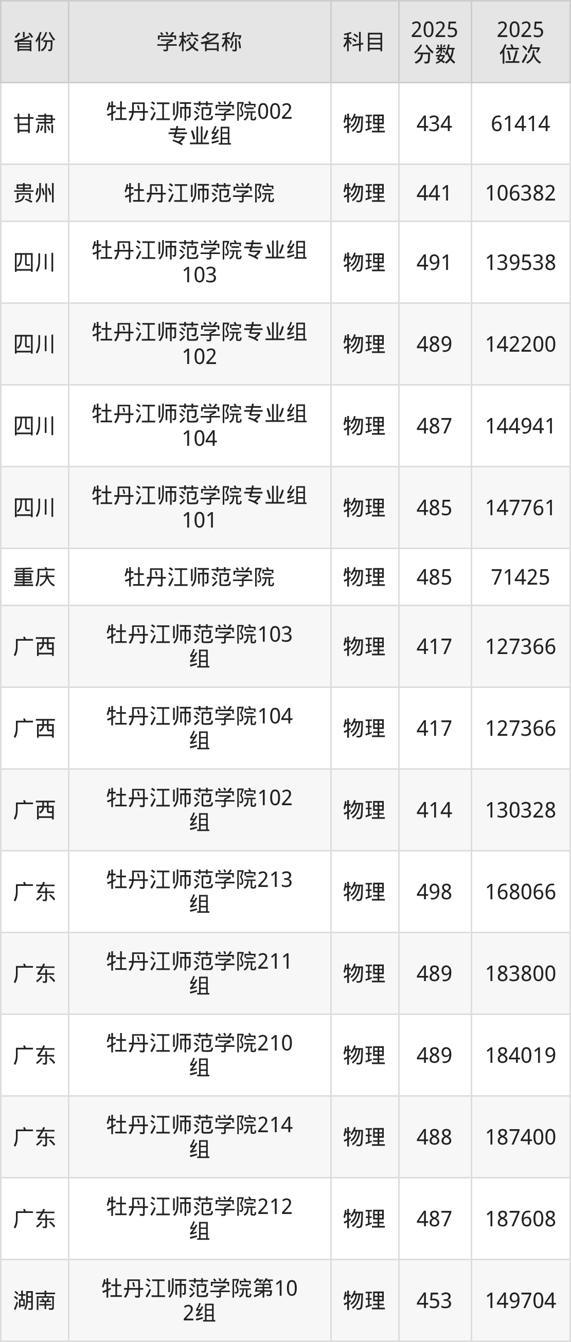 牡丹江师范学院2025年有31个专业组面向黑龙江省内首选了物理科目的考生招生: