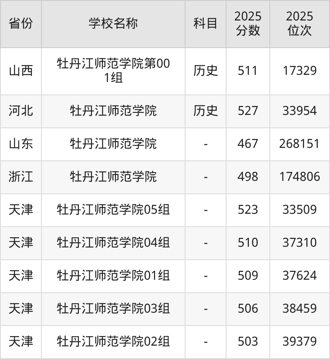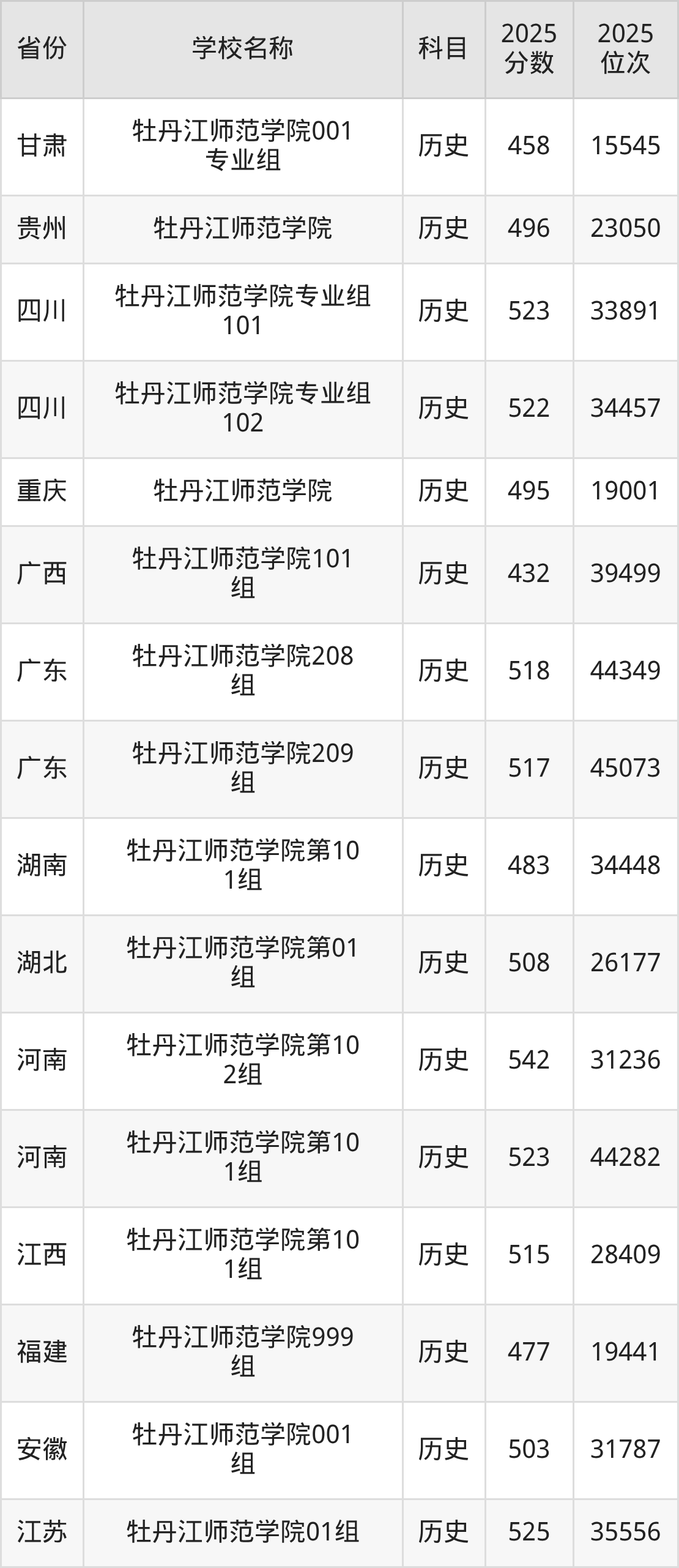 二、牡丹江师范学院各专业录取分数线