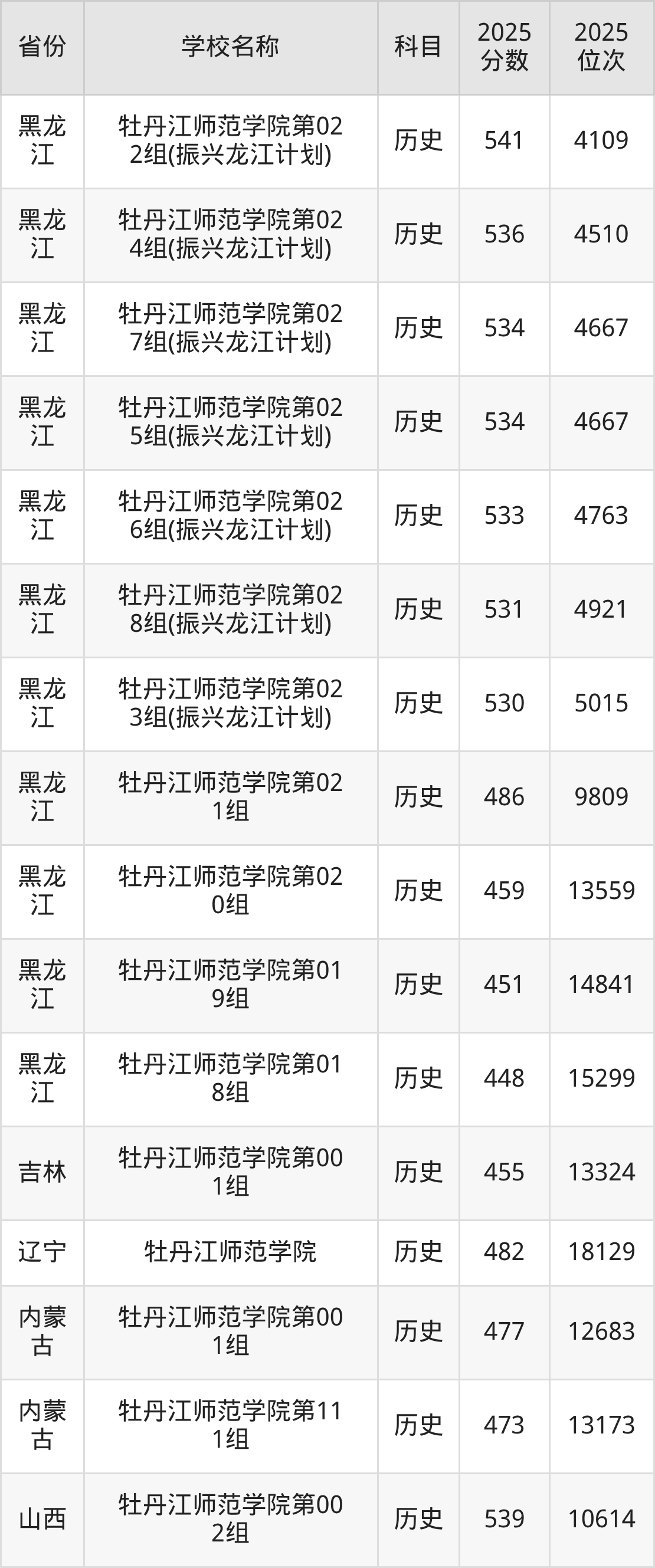 牡丹江师范学院2025年有28个专业组面向黑龙江省内首选了历史科目的考生招生: