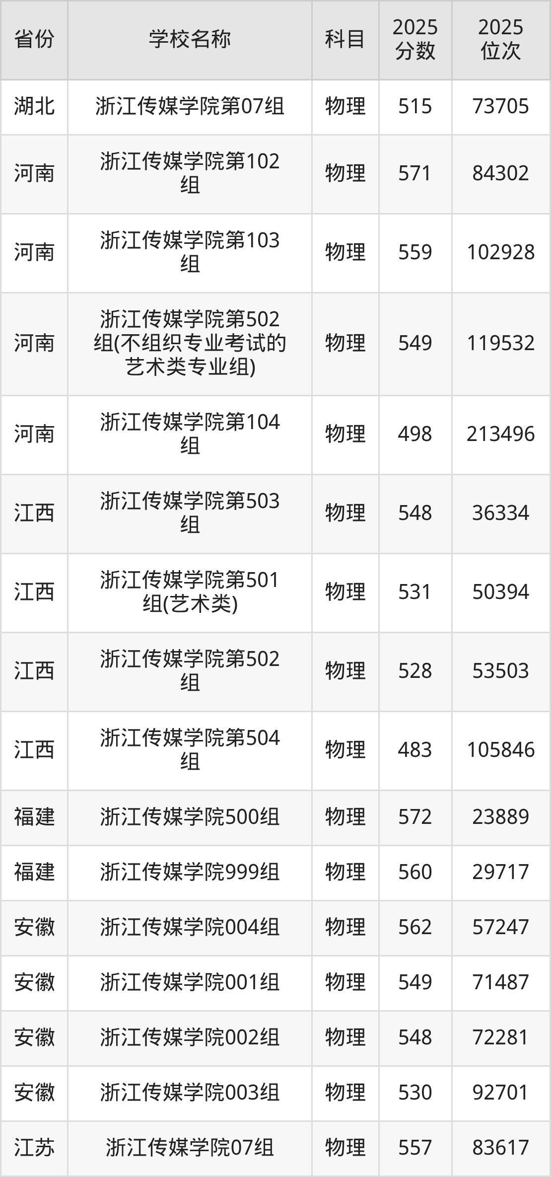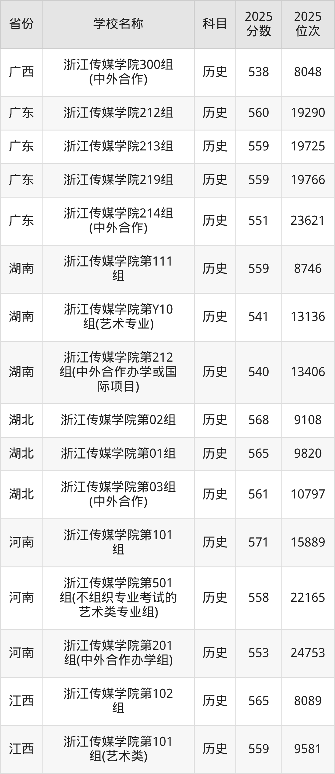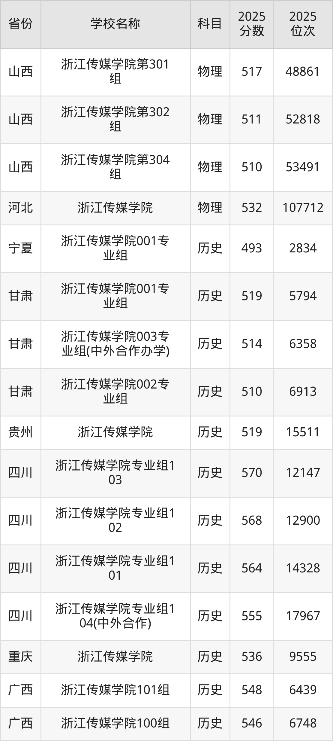 二、浙江传媒学院各专业录取分数线