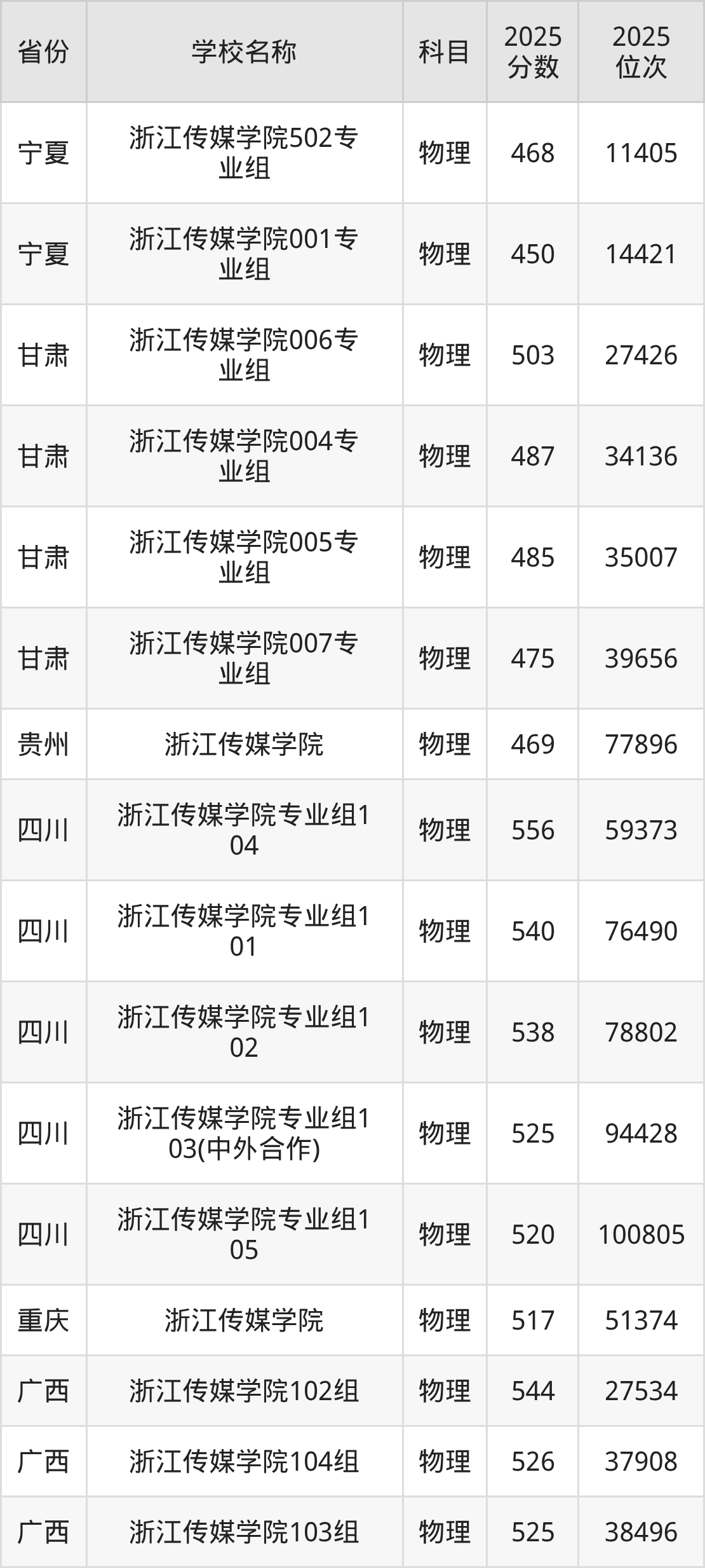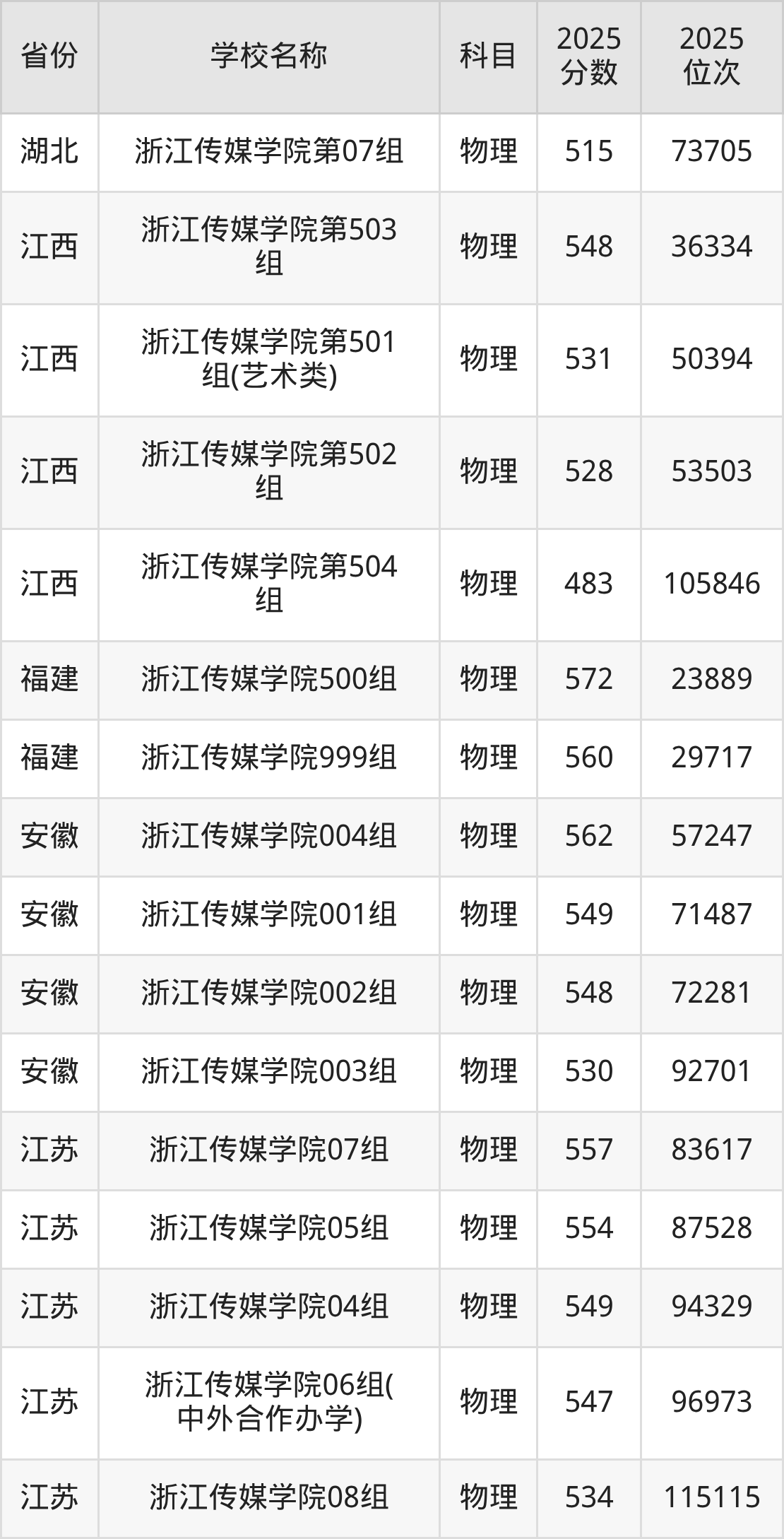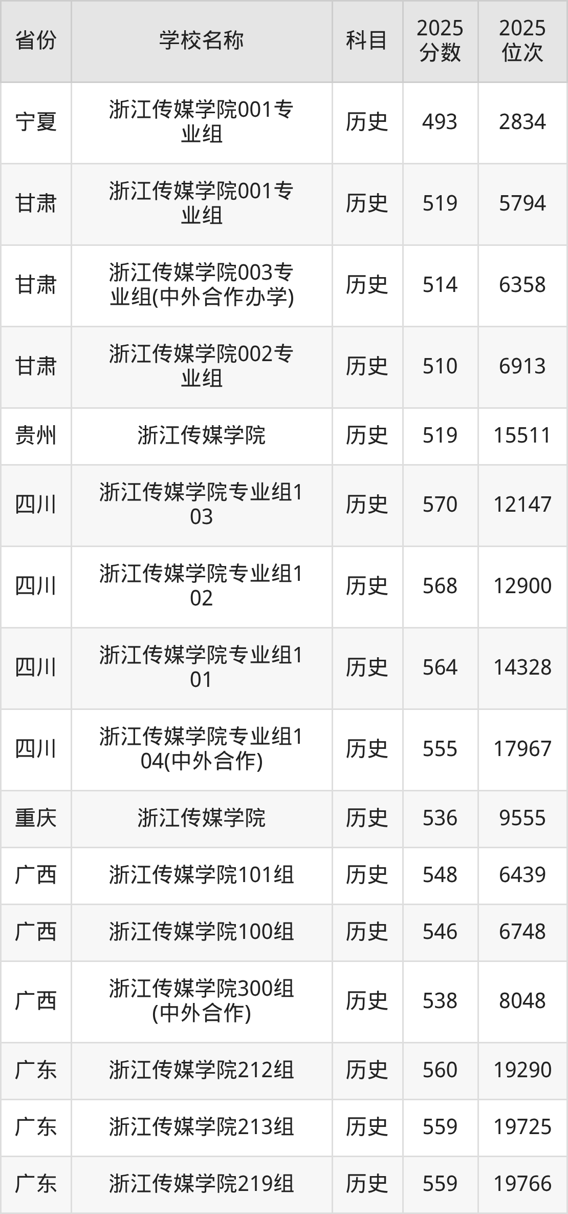 二、浙江传媒学院各专业录取分数线
