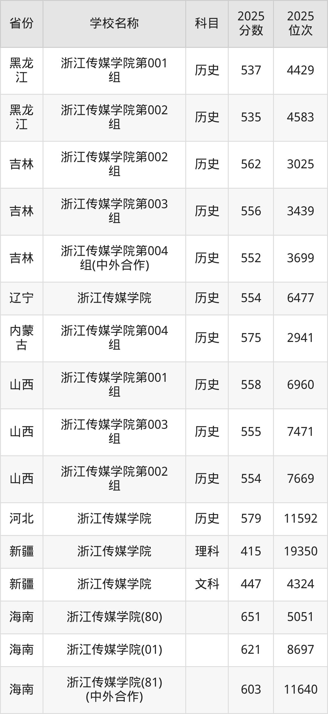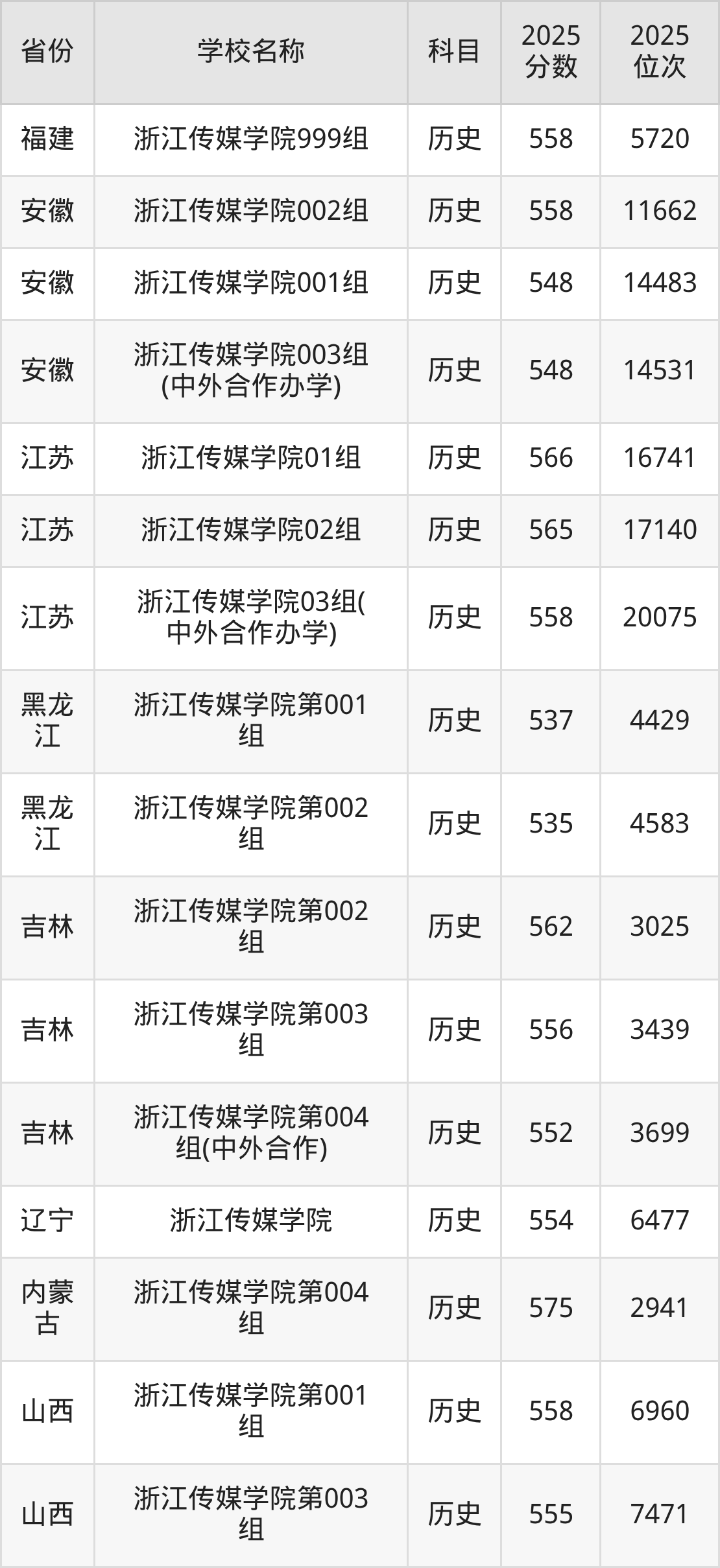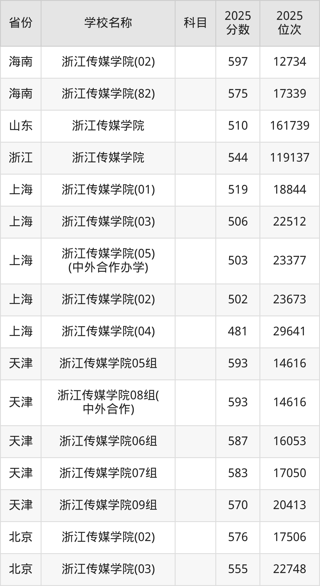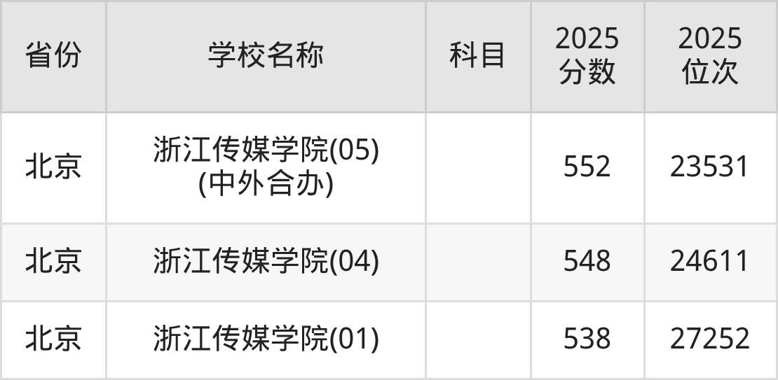 一、2025浙江传媒学院录取分数线