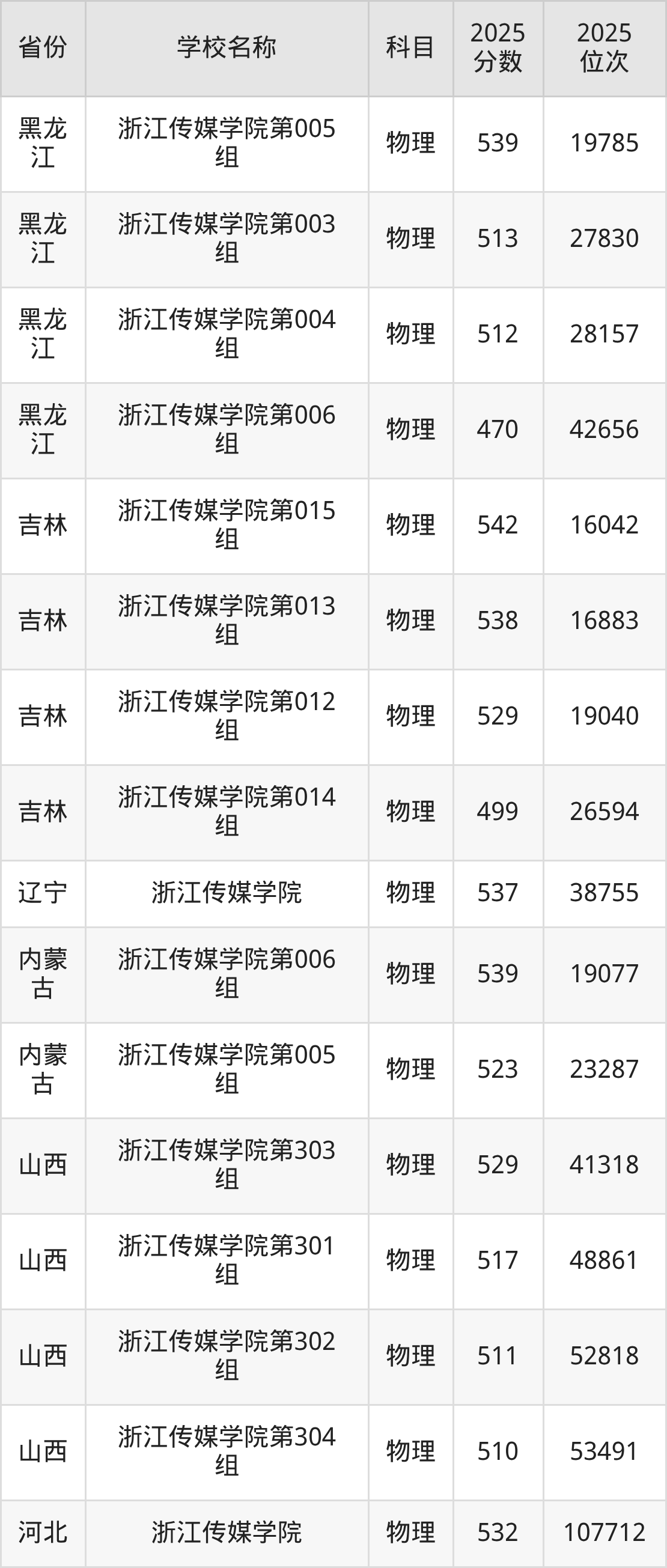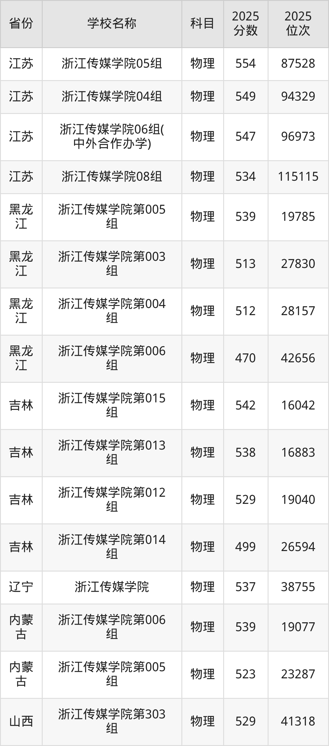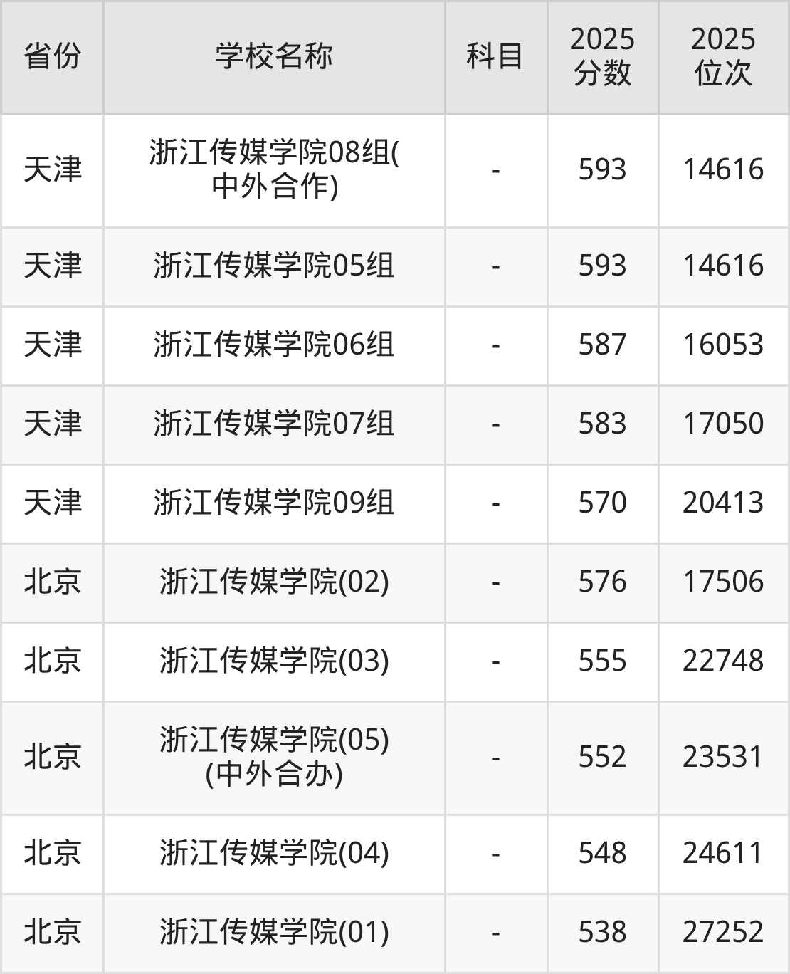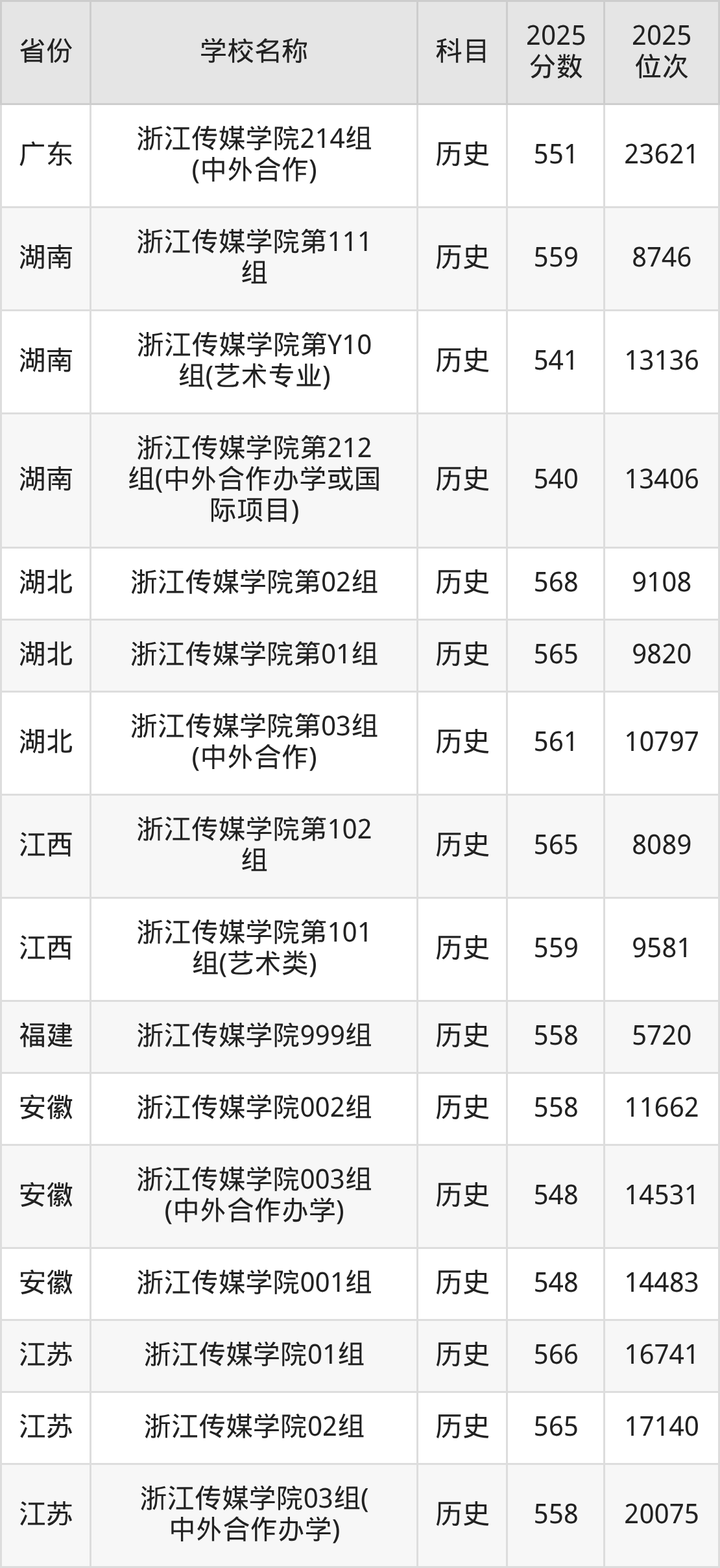 一、2025浙江传媒学院录取分数线