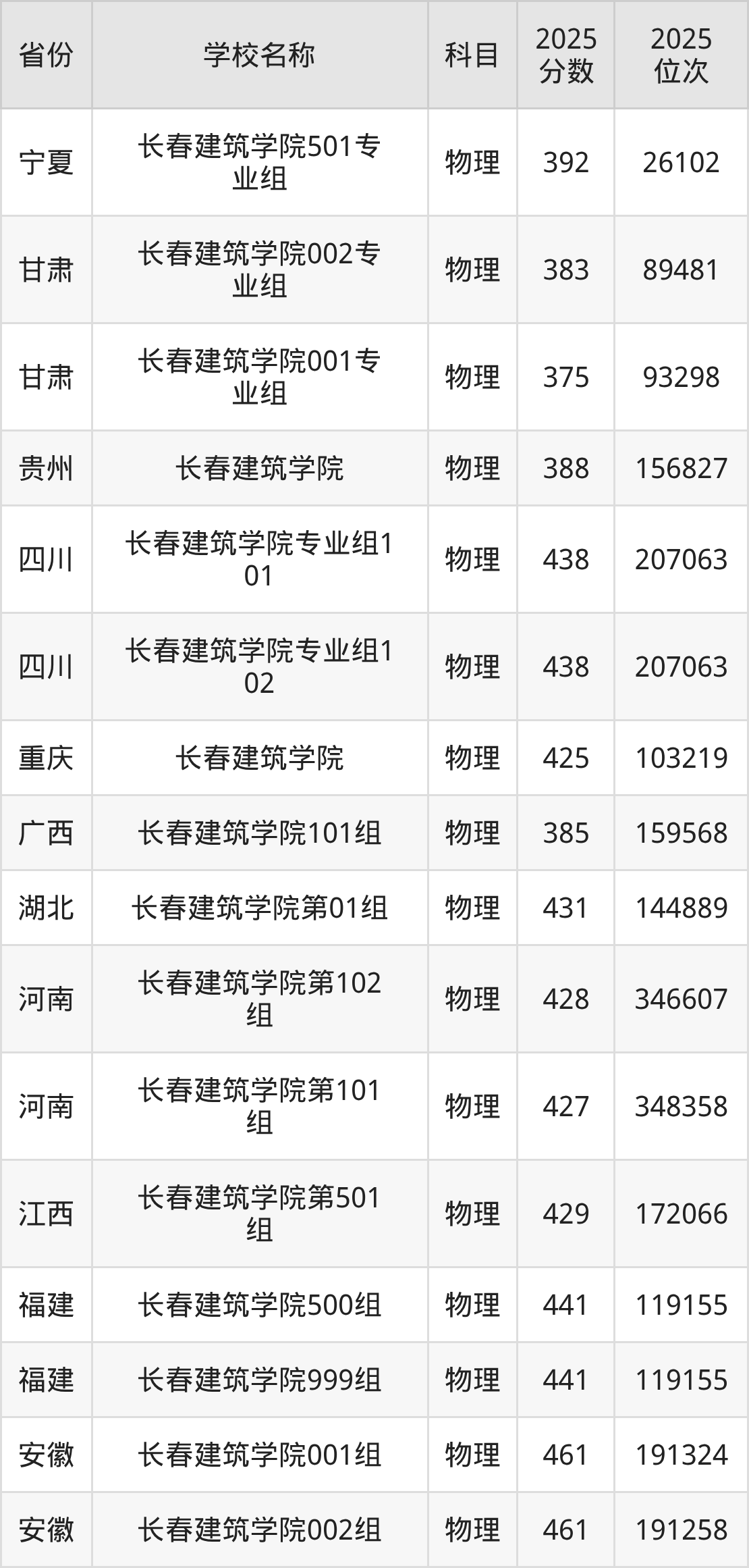 长春建筑学院2025年有2个专业组面向吉林省内首选了物理科目的考生招生: