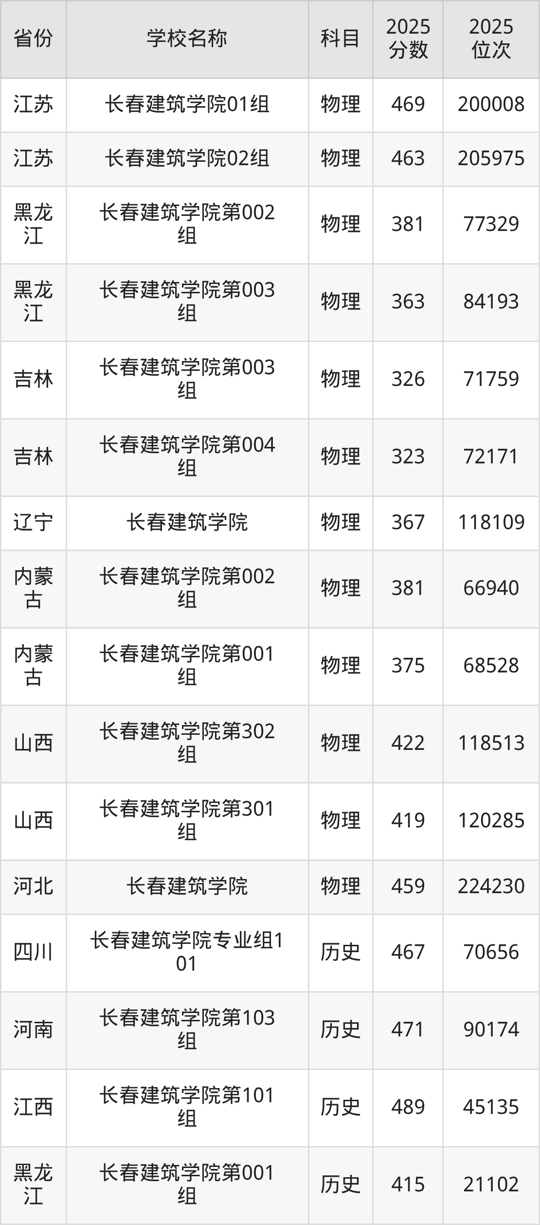 一、2025长春建筑学院录取分数线