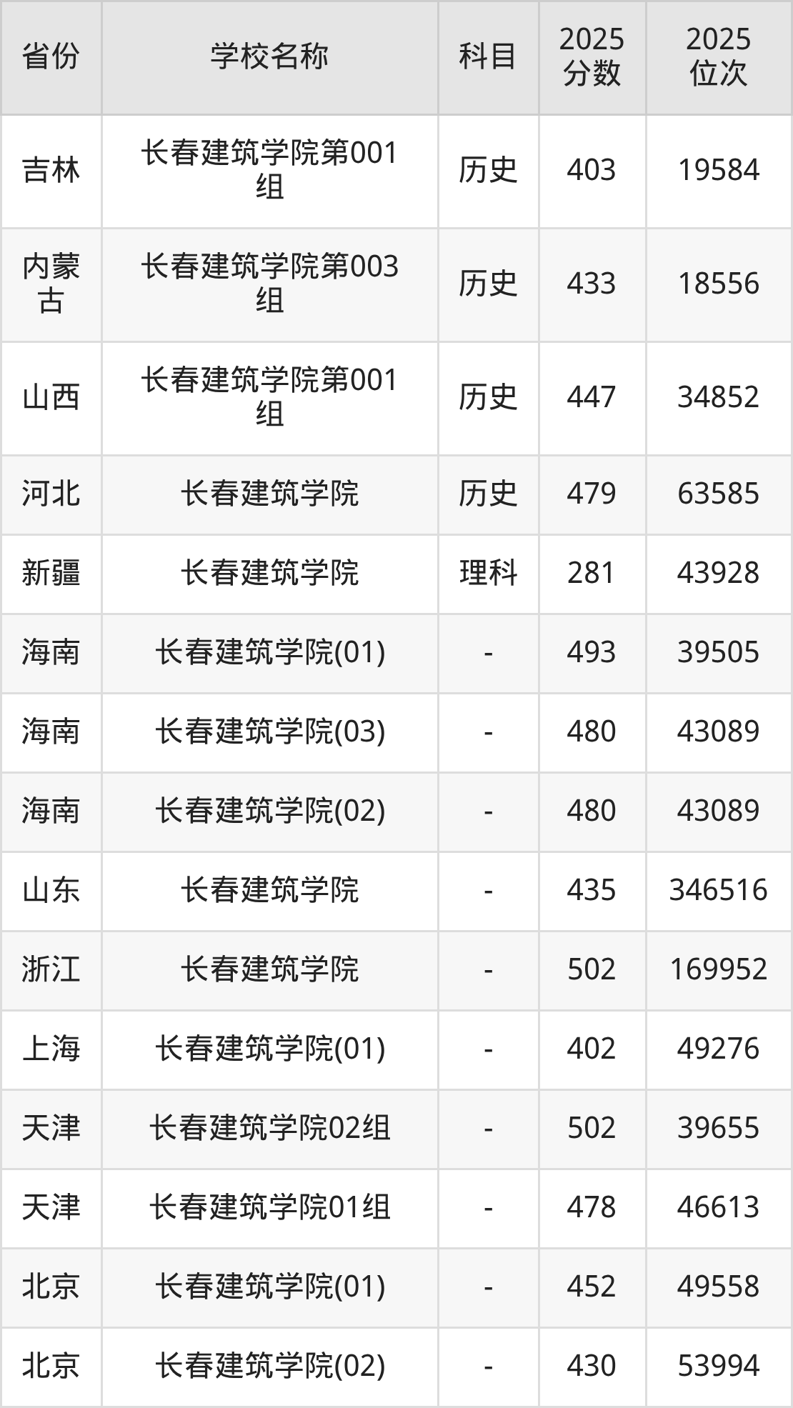 2025年长春建筑学院在全国各省本科的最低录取分数线在281~502分之间。浙江高考生最低502分能上长春建筑学院、天津高考生最低502分能上长春建筑学院……下文将展示长春建筑学院在全国25个高考省份中的本科最低投档录取分汇总!