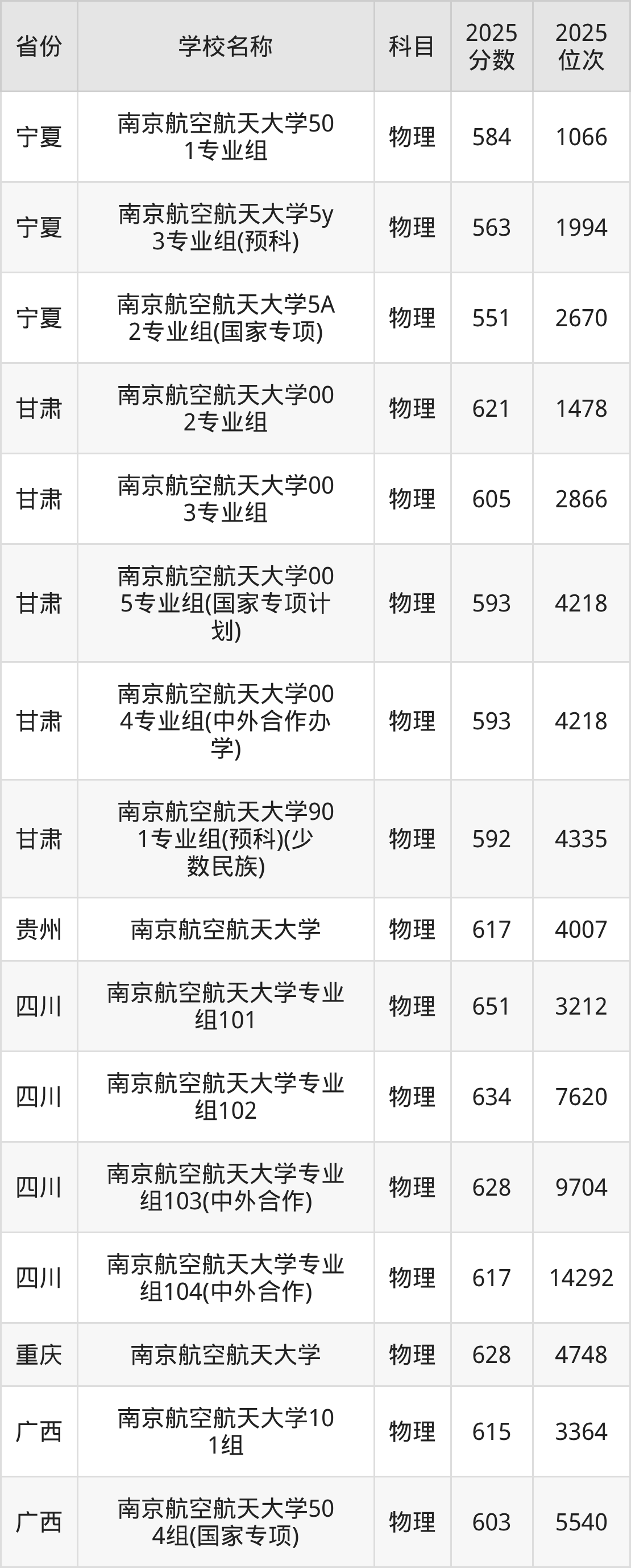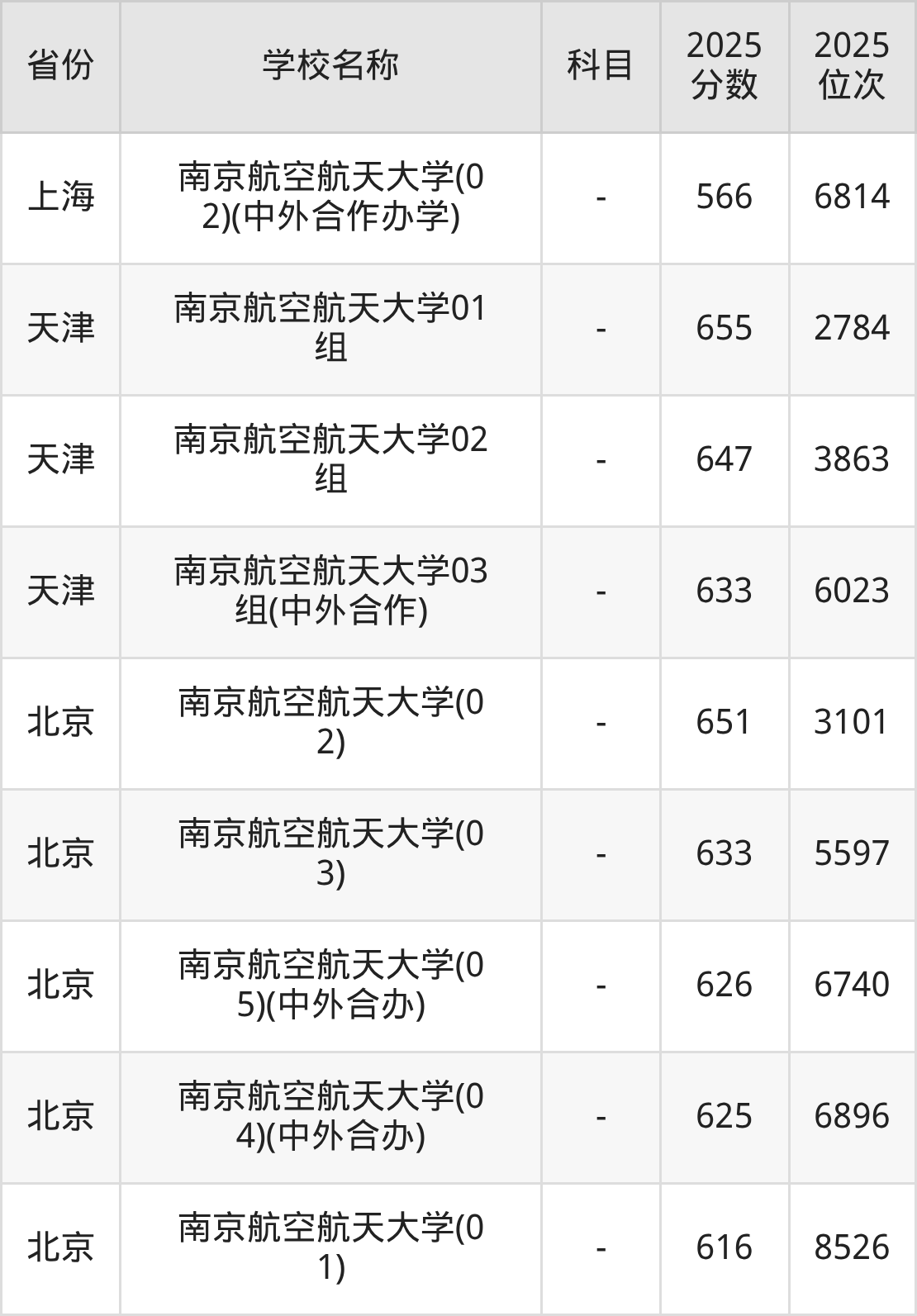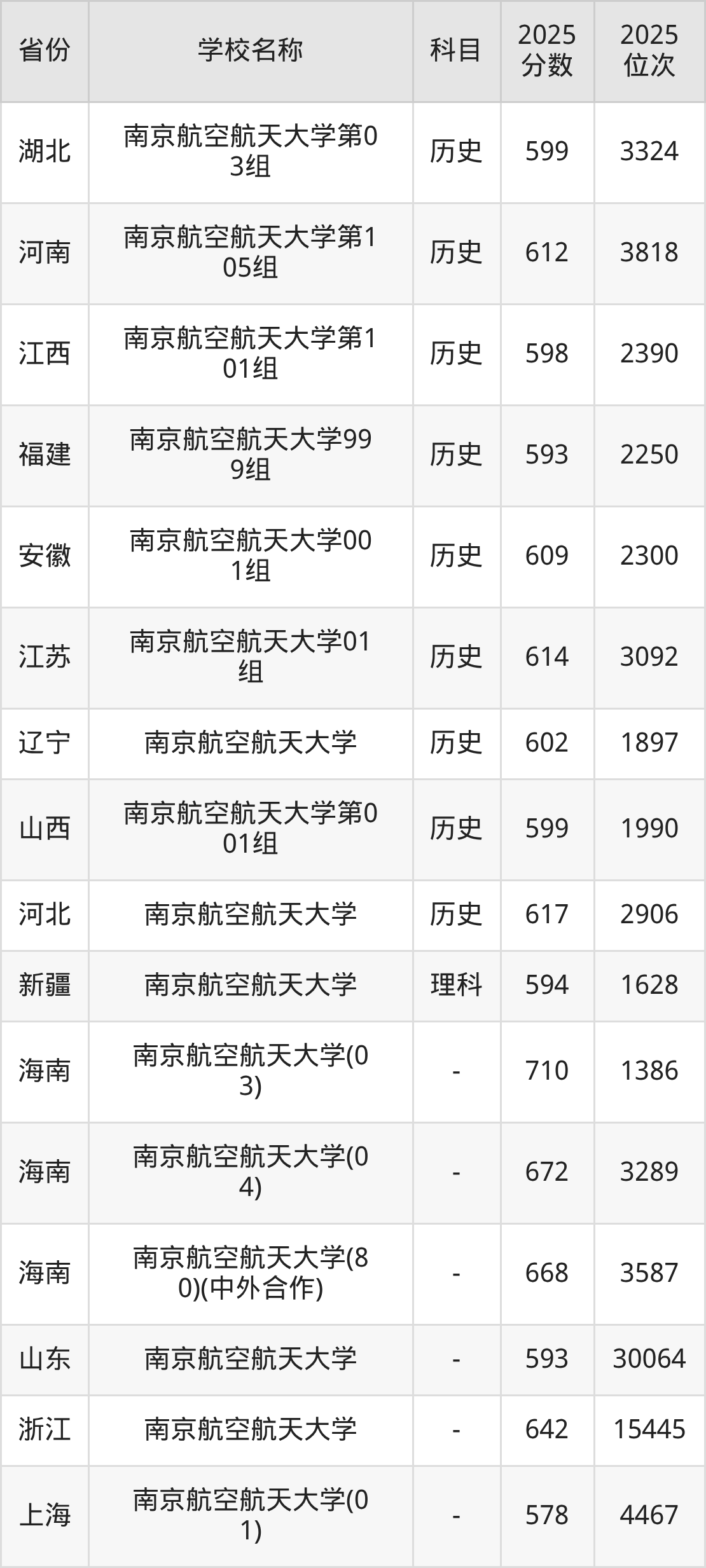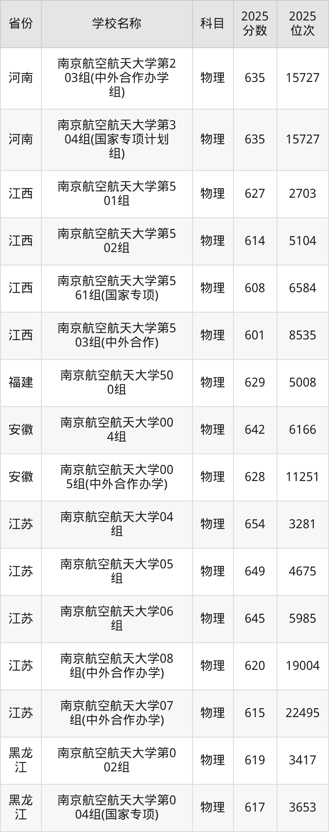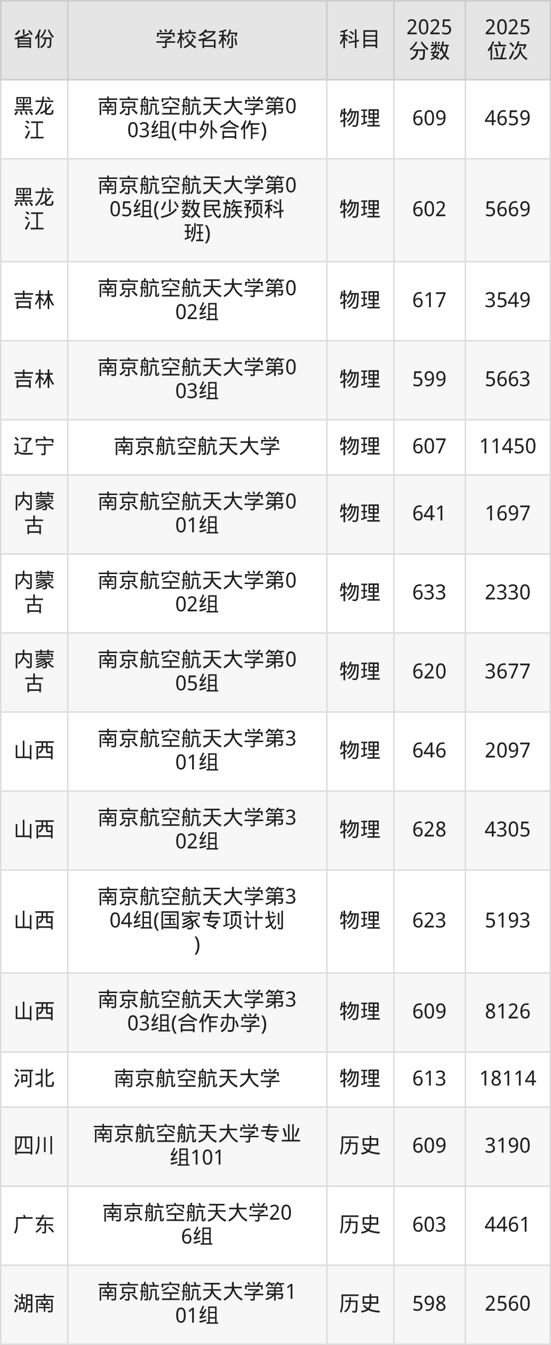 一、2025南京航空航天大学录取分数线
