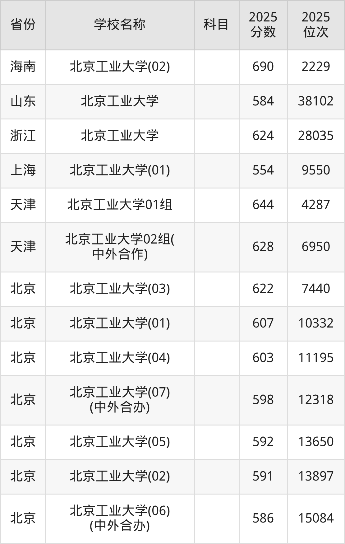 2025年北京工业大学在全国各省本科的最低录取分数线在512~690分之间。海南高考生最低690分能上北京工业大学、天津高考生最低644分能上北京工业大学……下文将展示北京工业大学在全国26个高考省份中的本科最低投档录取分汇总!