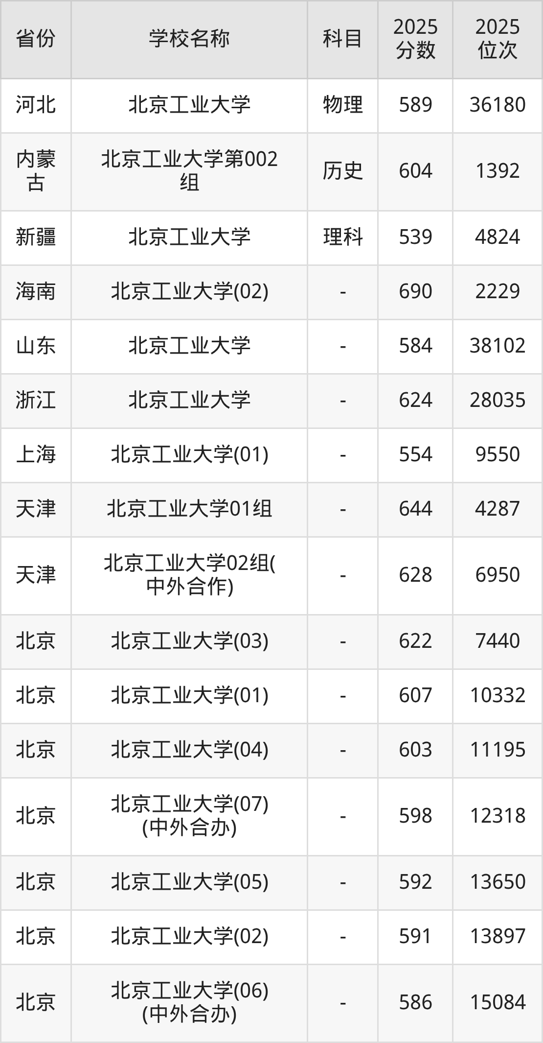 2025年北京工业大学在全国各省本科的最低录取分数线在512~690分之间。海南高考生最低690分能上北京工业大学、天津高考生最低644分能上北京工业大学……下文将展示北京工业大学在全国27个高考省份中的本科最低投档录取分汇总!