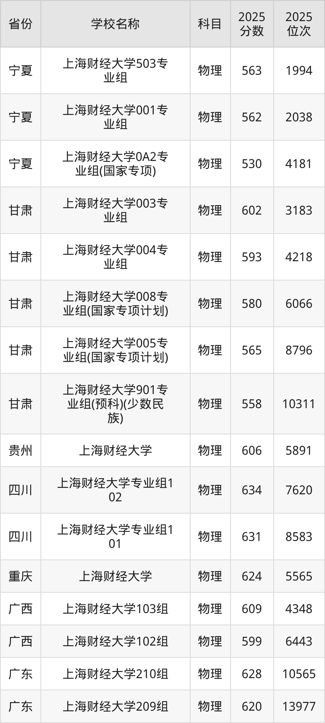 二、上海财经大学各专业录取分数线