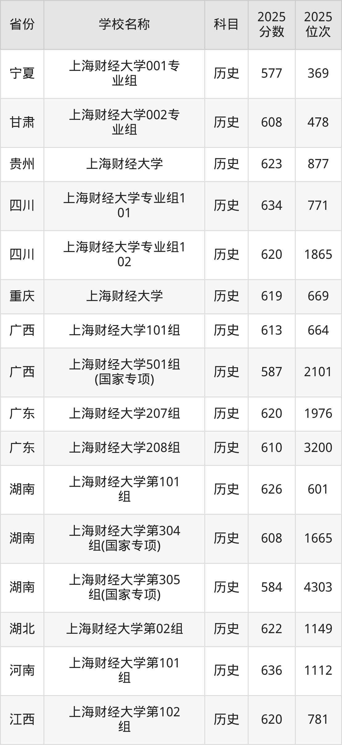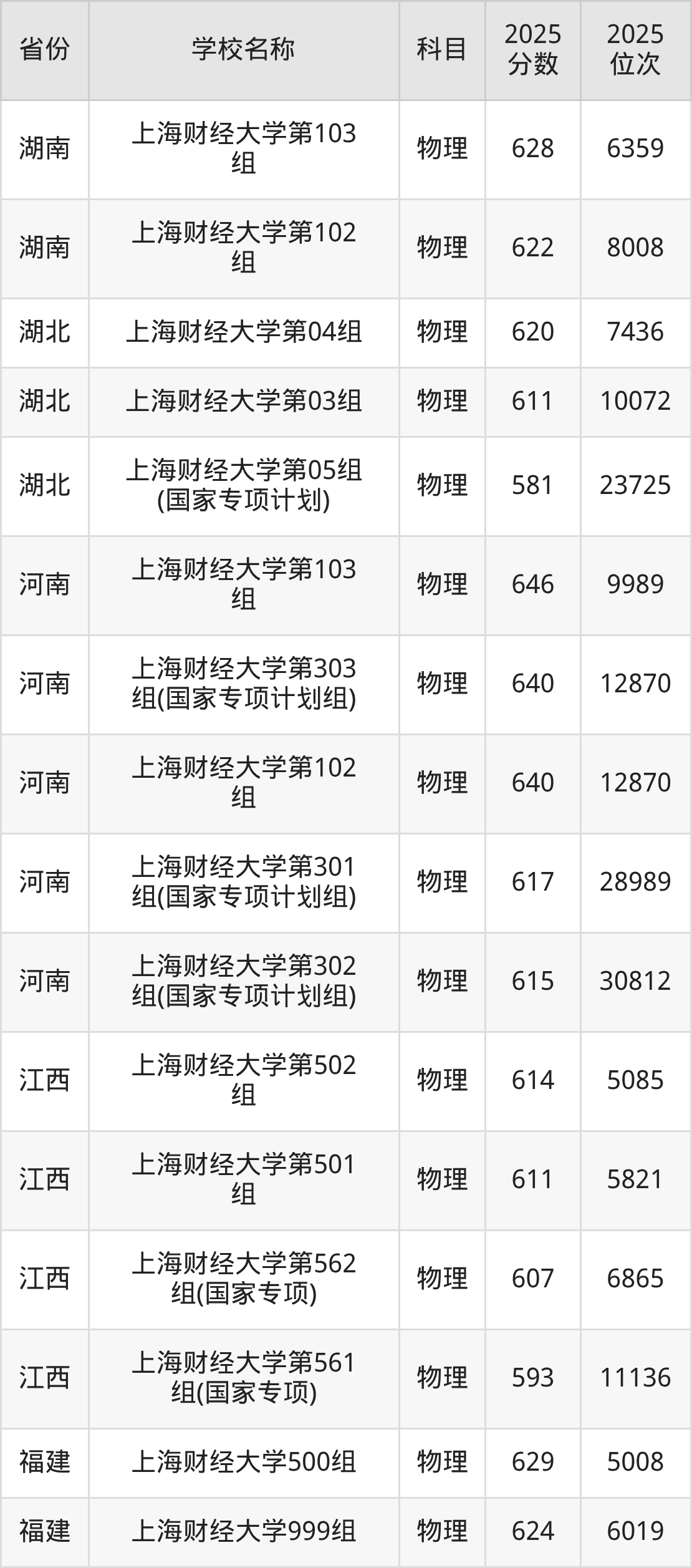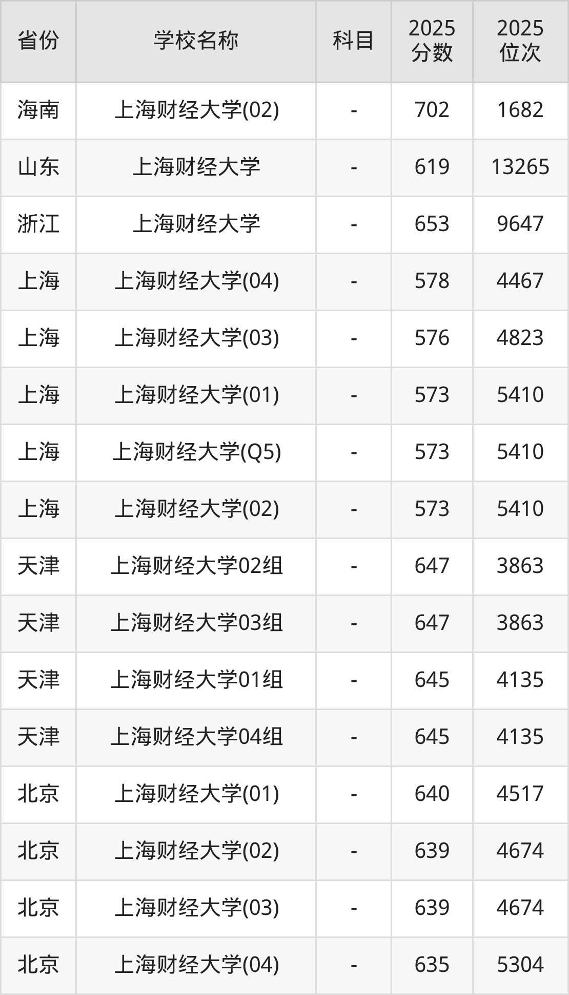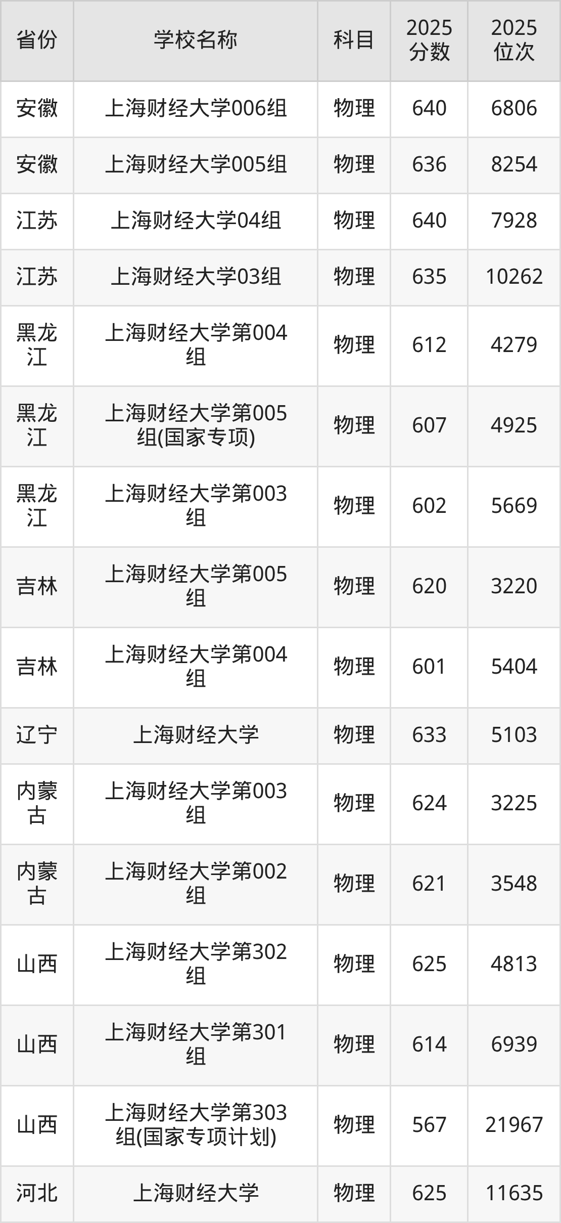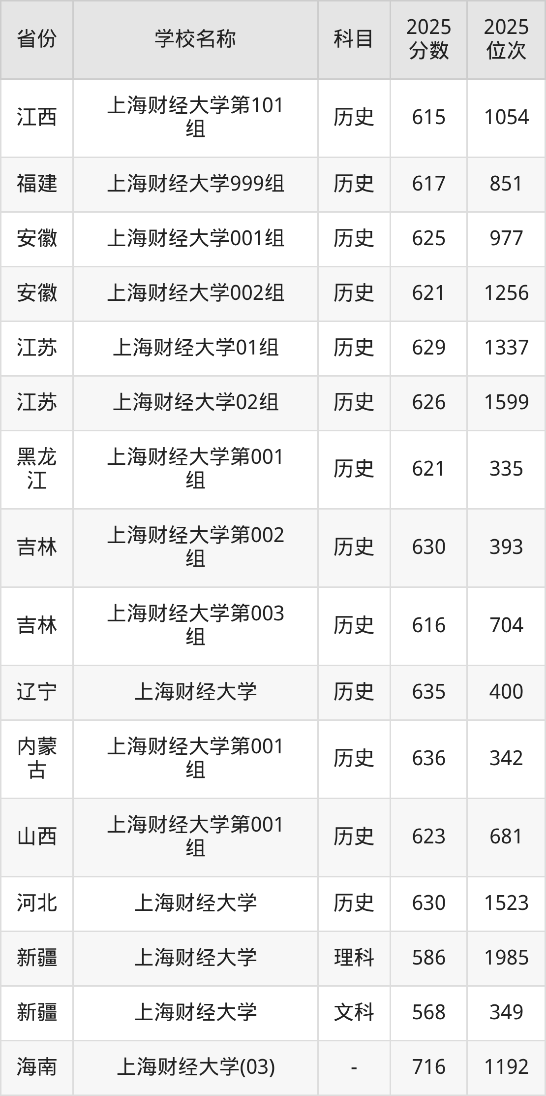 一、2025上海财经大学录取分数线