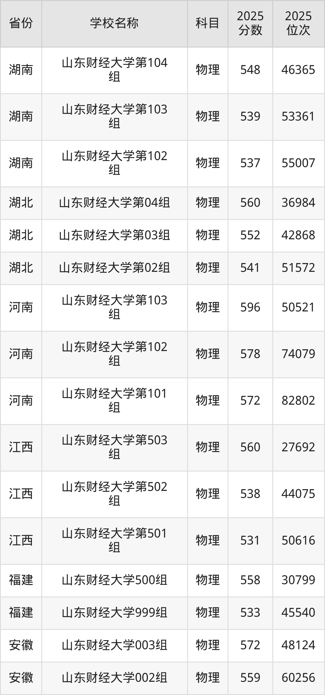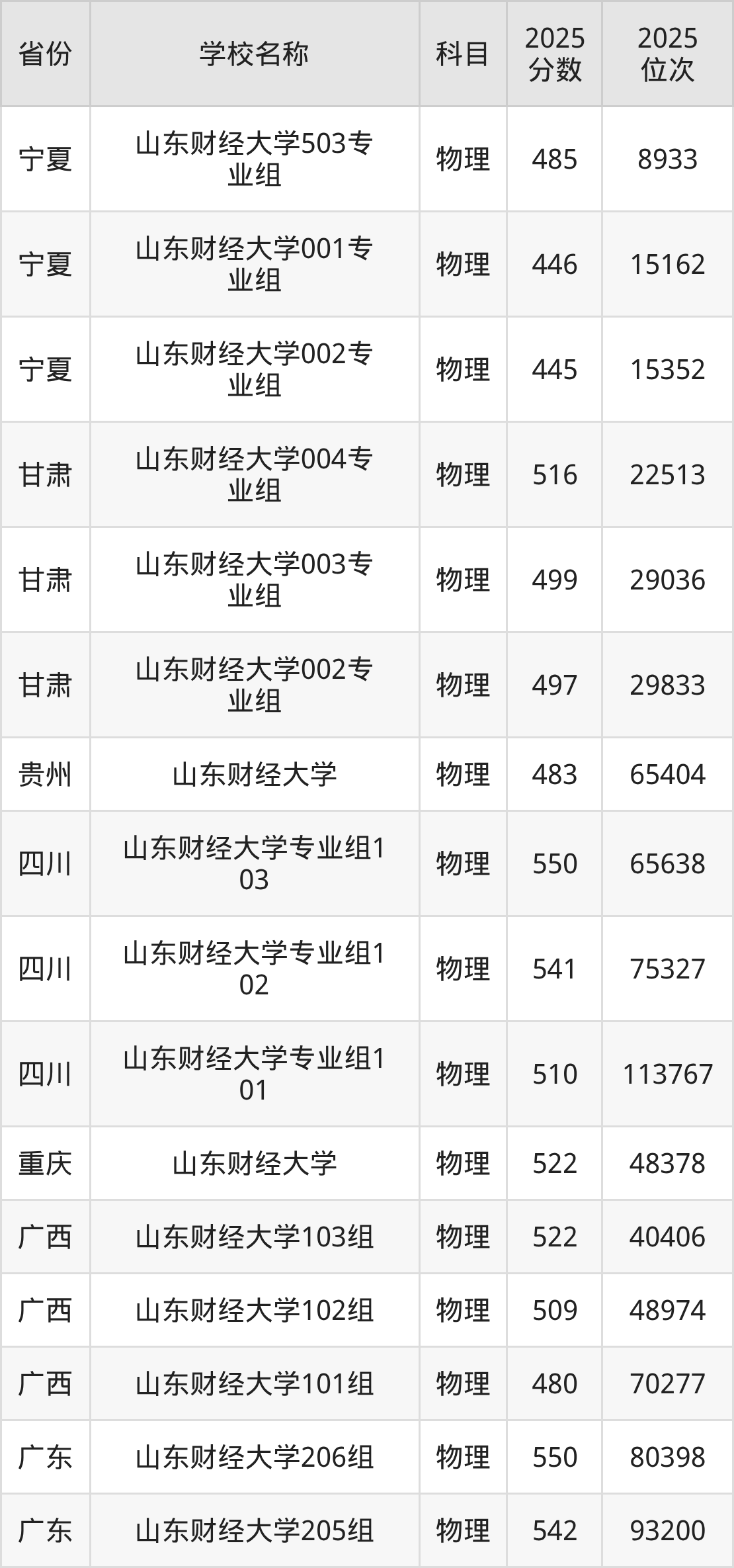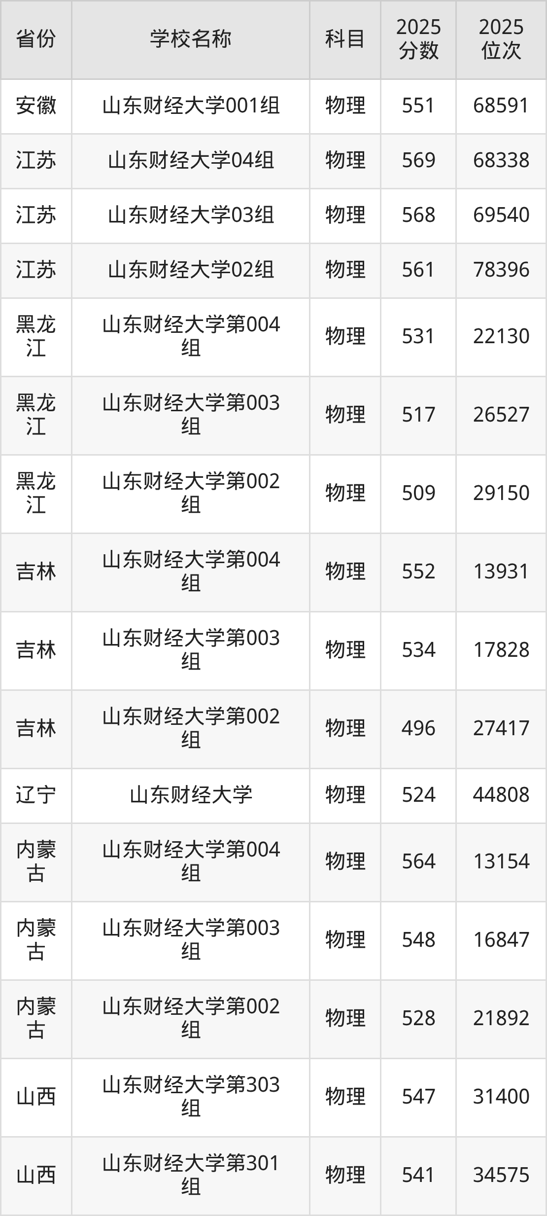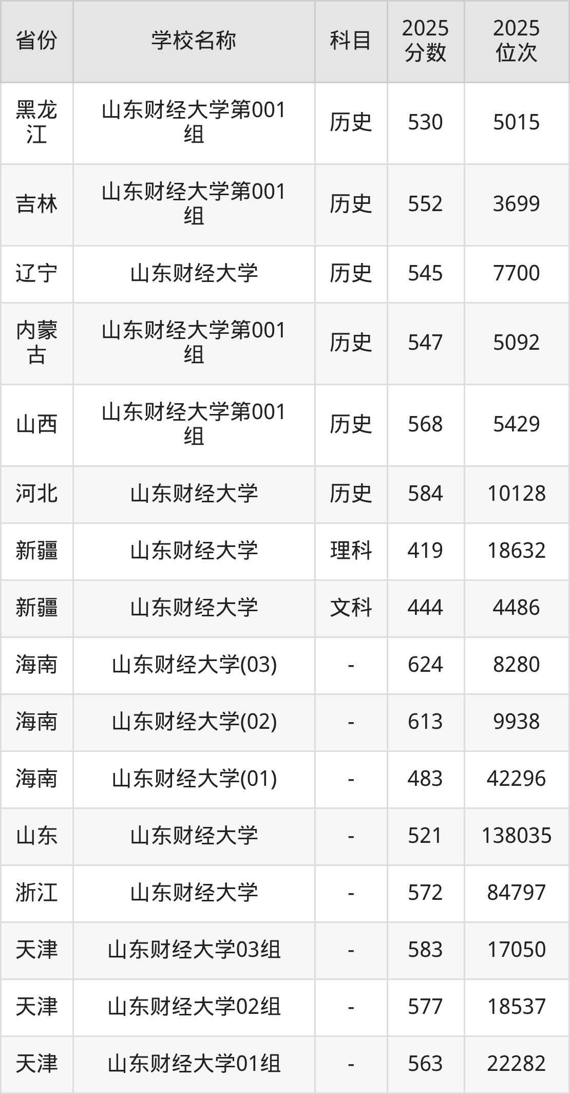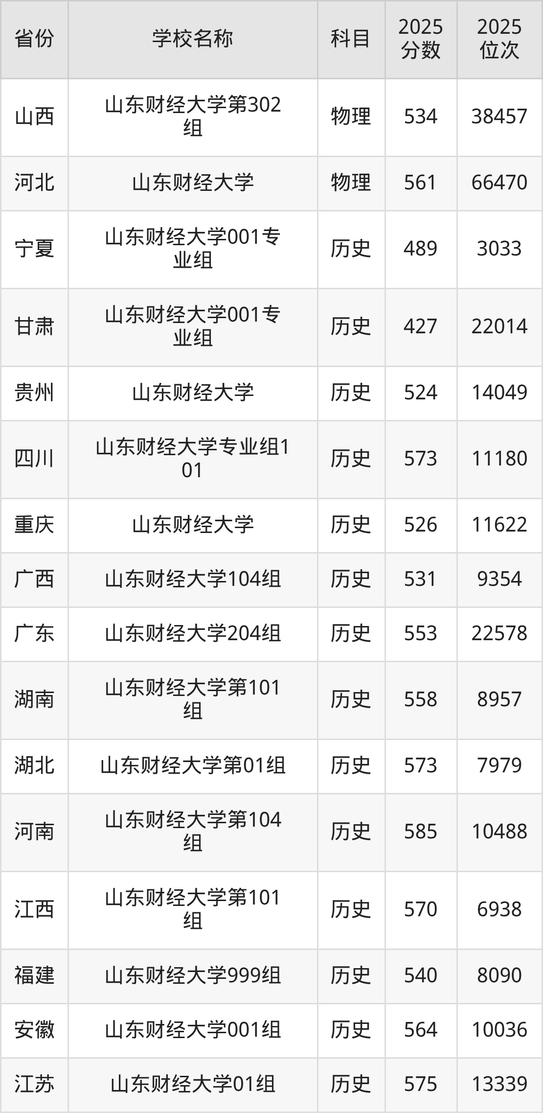 二、山东财经大学各专业录取分数线