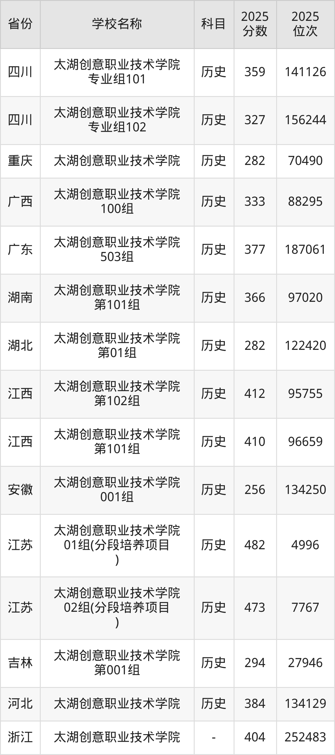 太湖创意职业技术学院2025年有2个专业组面向江苏省内首选了历史科目的考生招生: