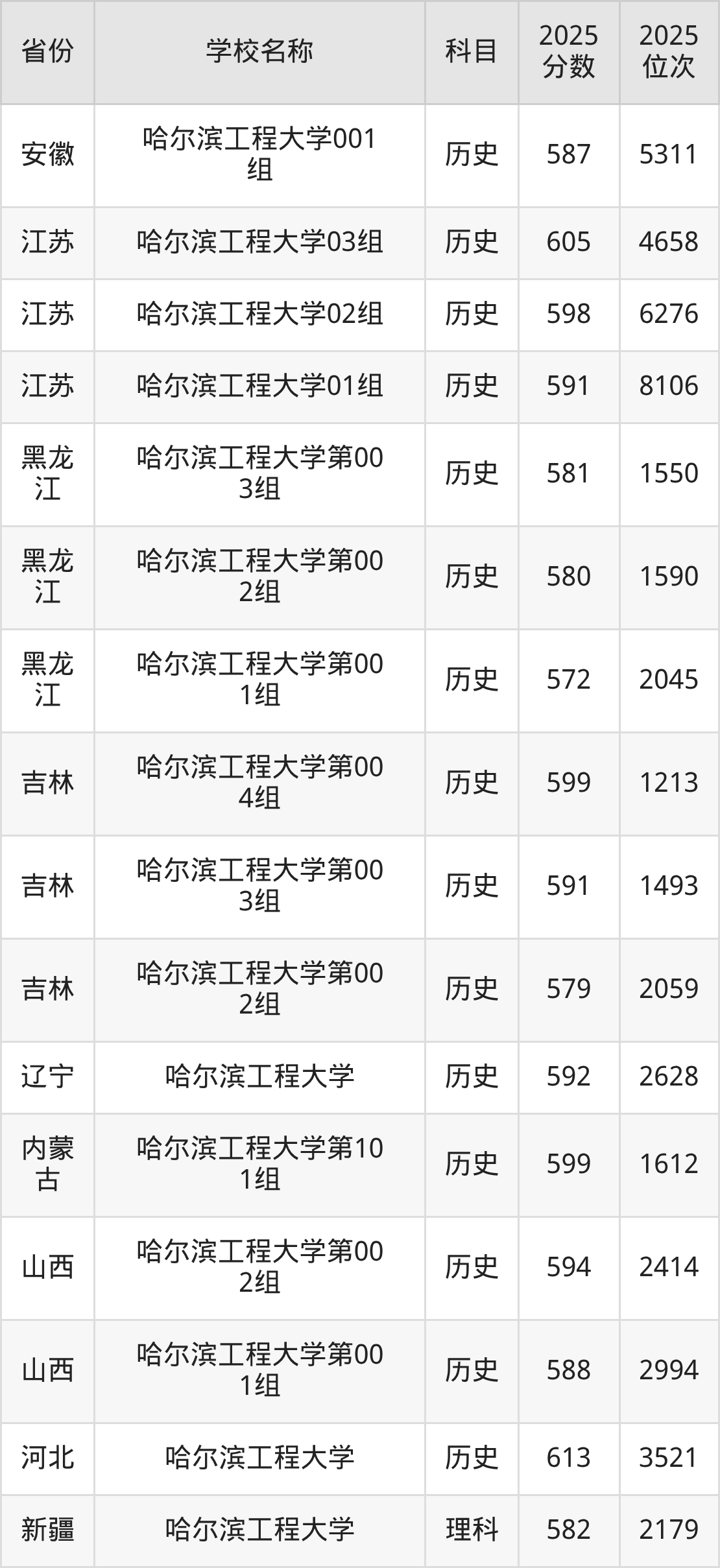 哈尔滨工程大学2025年有3个专业组面向黑龙江省内首选了历史科目的考生招生: