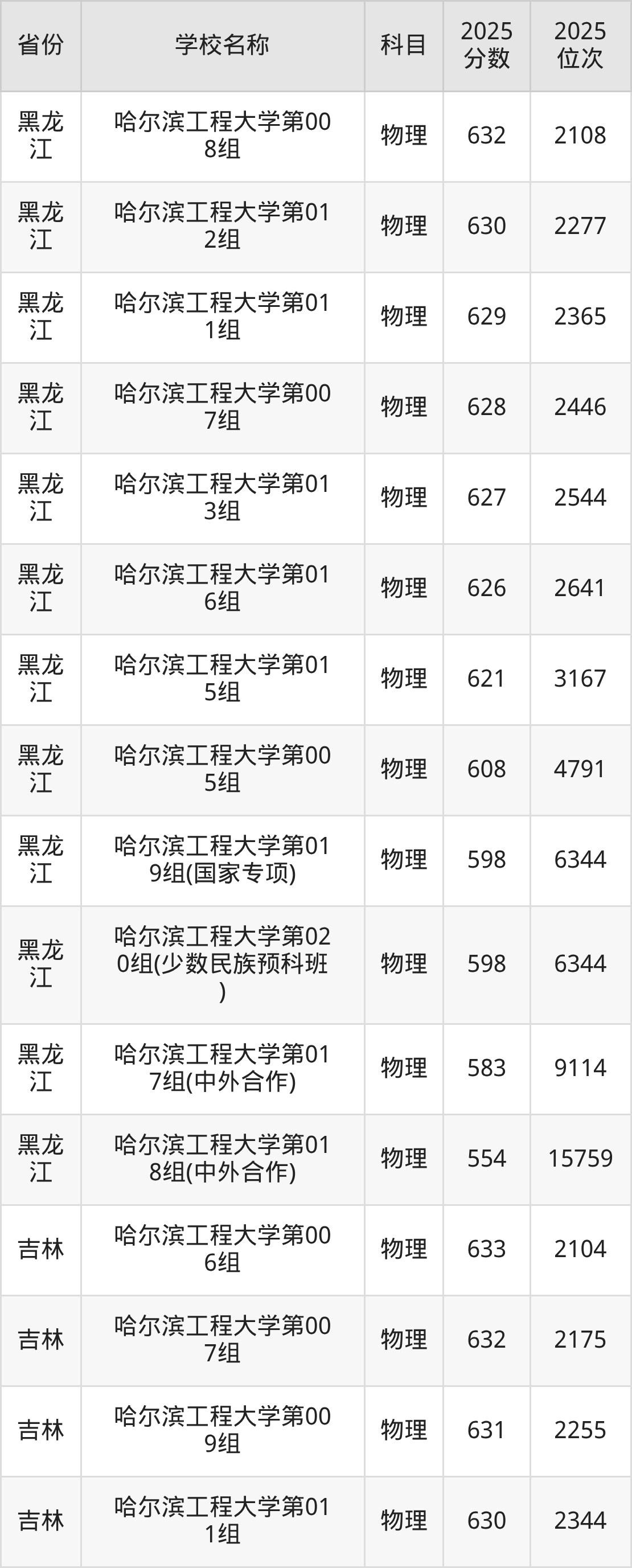 哈尔滨工程大学2025年有16个专业组面向黑龙江省内首选了物理科目的考生招生: