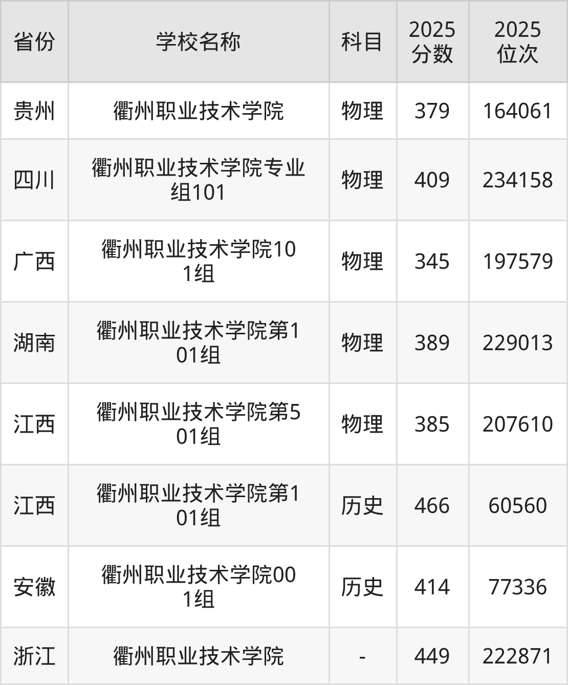 一、2025衢州职业技术学院录取分数线