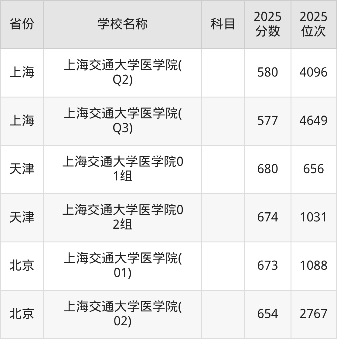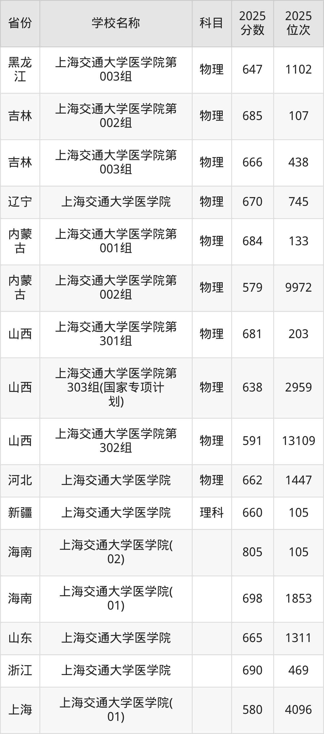 一、2025上海交通大学医学院录取分数线