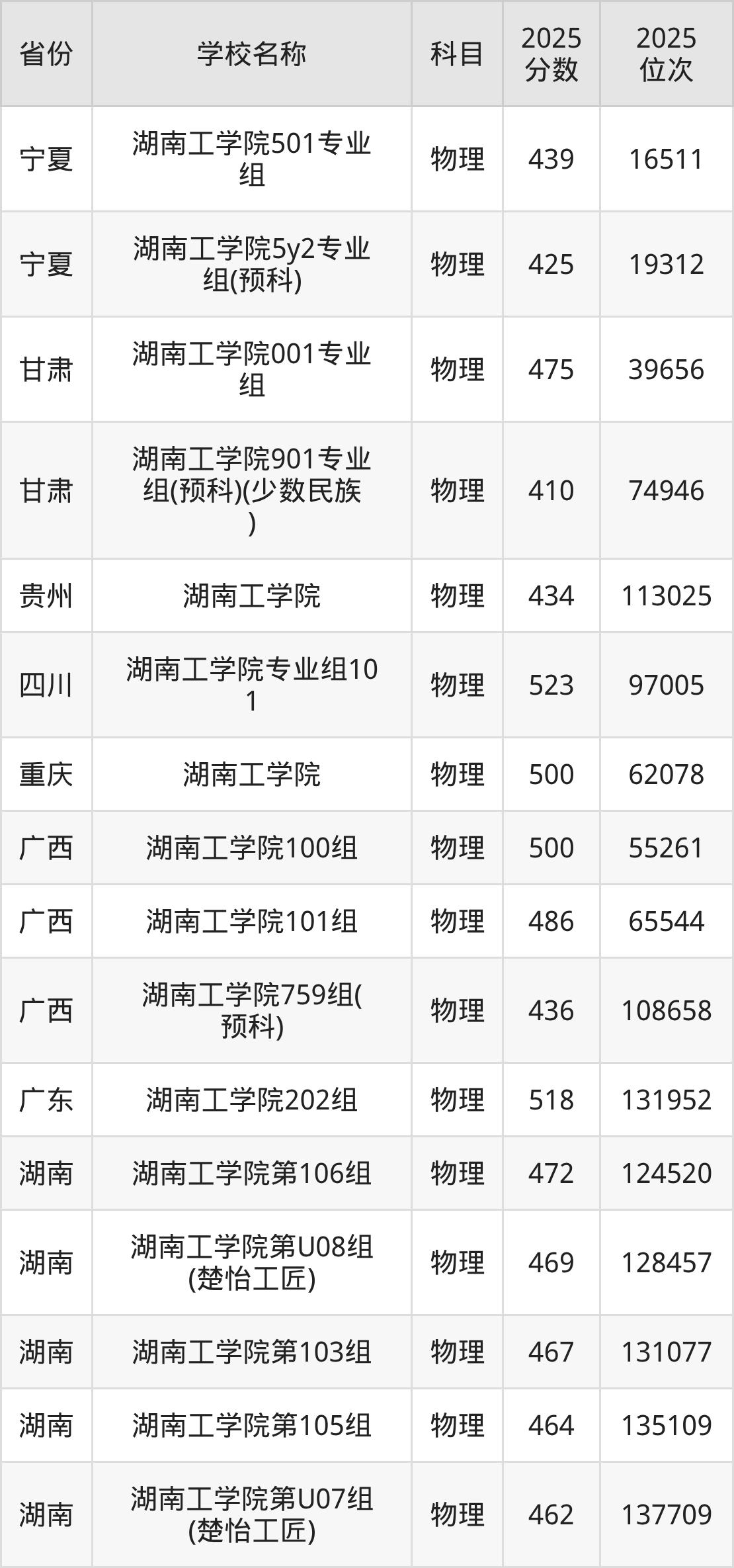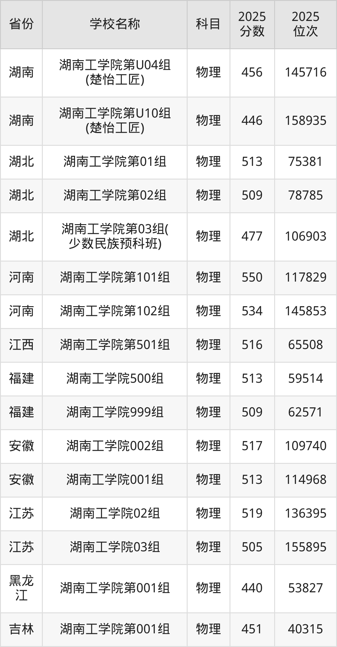 湖南工学院2025年有7个专业组面向湖南省内首选了物理科目的考生招生: