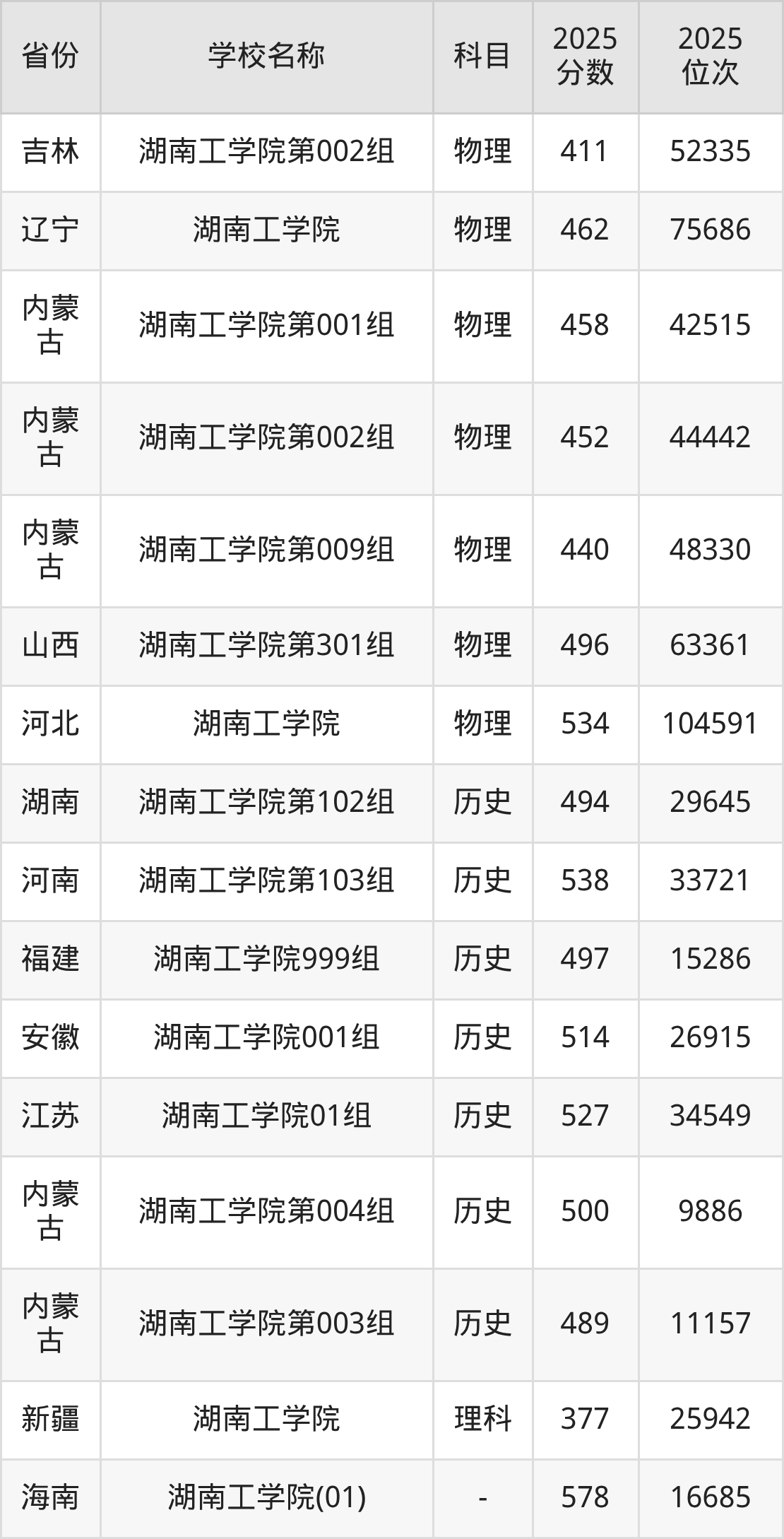 再看湖南高考2025年本科批次线,历史类是446分、物理类是405分。通过对比发现:湖南工学院2025年历史类最低分比本科线高48分,物理类最低分比本科线高41分。2026届湖南高考生,可通过每一次模考划线,来判断自己的成绩是否有机会被湖南工学院录取。