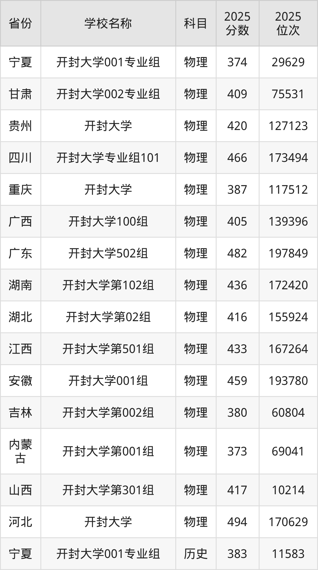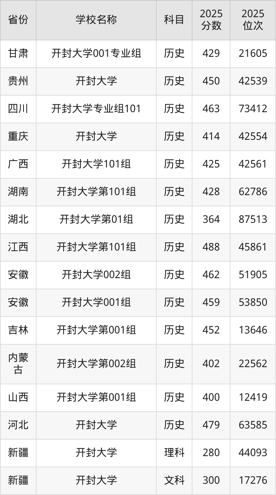 2025年开封大学在全国各省专科的最低录取分数线在280~494分之间。河北物理类高考生最低494分能上开封大学、广东物理类高考生最低482分能上开封大学……下文将展示开封大学在全国17个高考省份中的专科最低投档录取分汇总!