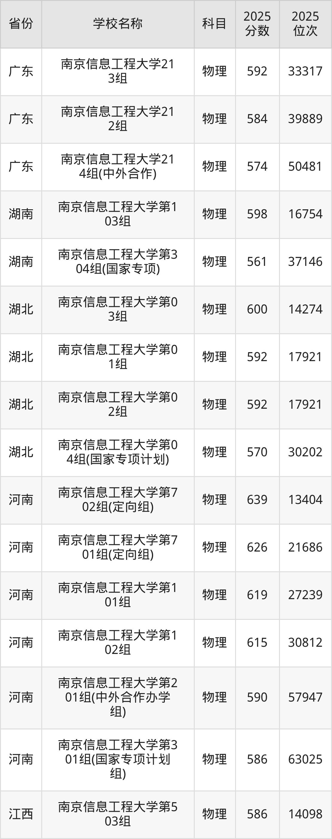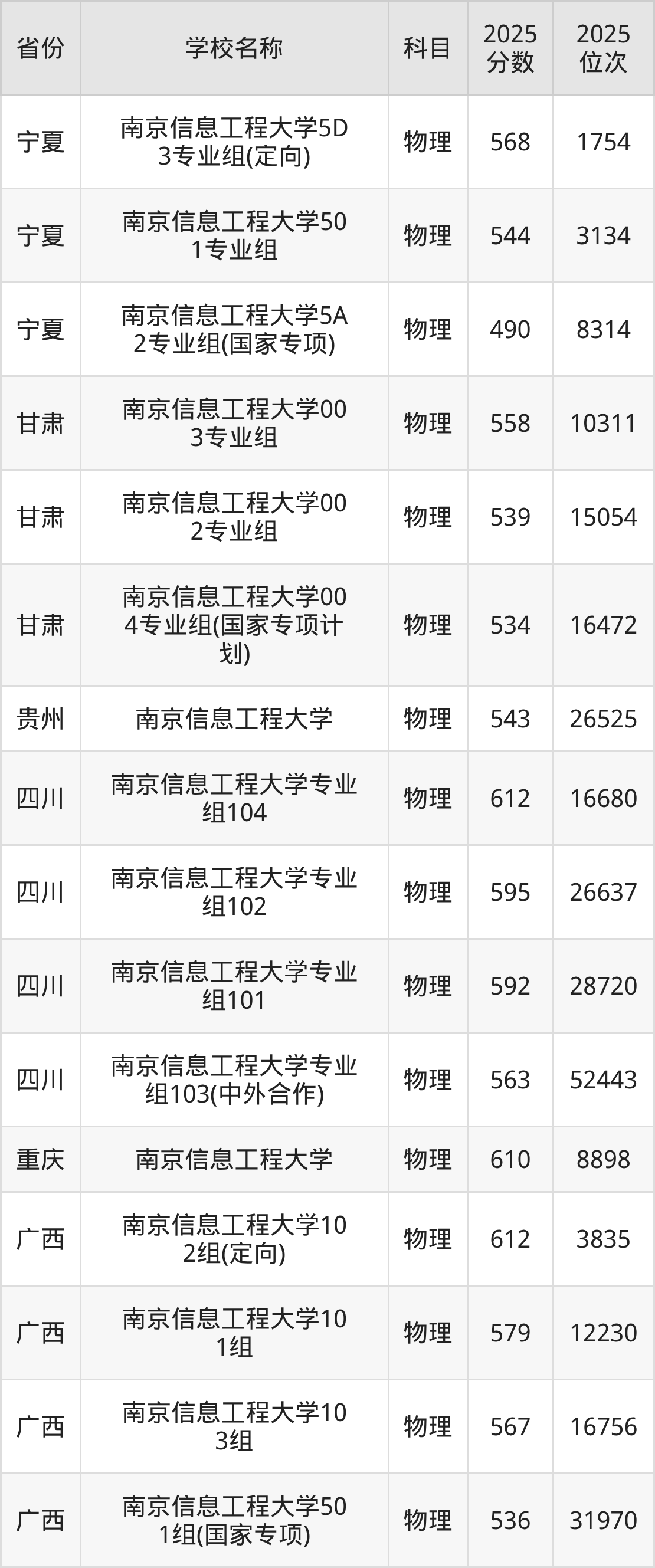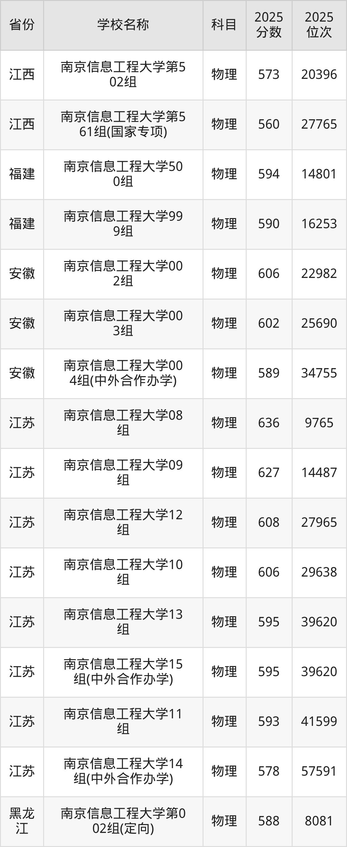 南京信息工程大学2025年有12个专业组面向江苏省内首选了物理科目的考生招生: