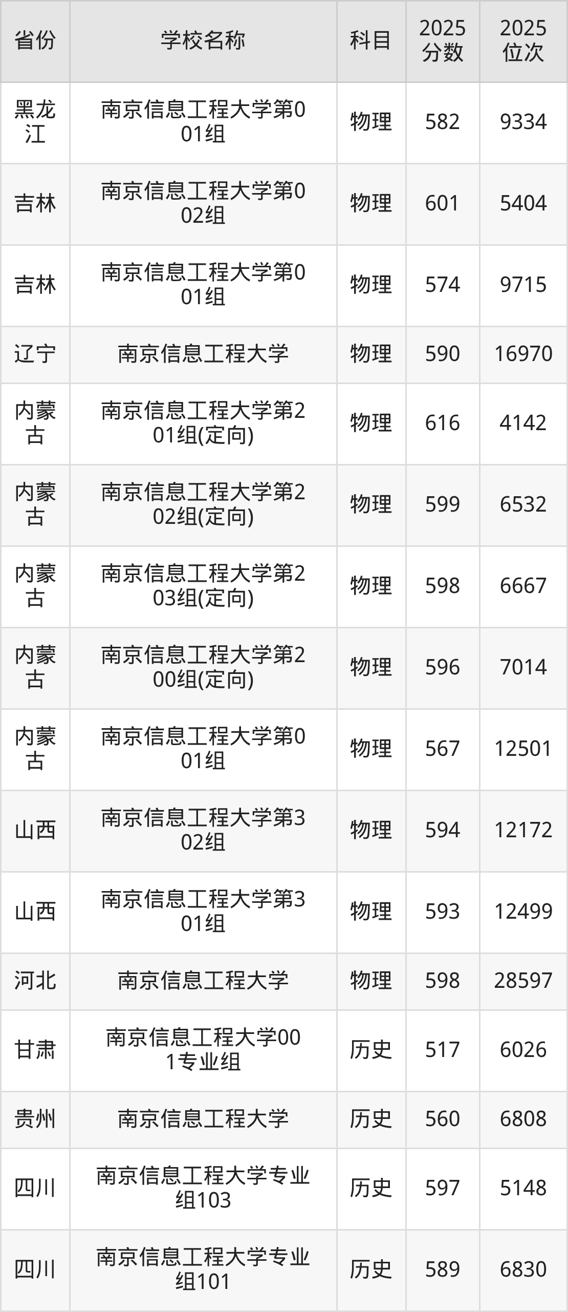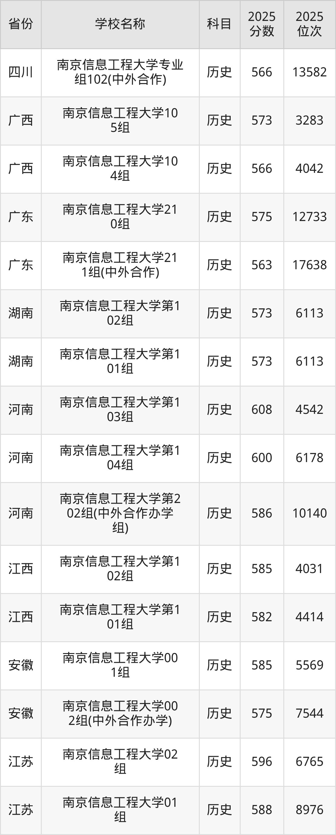 南京信息工程大学2025年有3个专业组面向江苏省内首选了历史科目的考生招生: