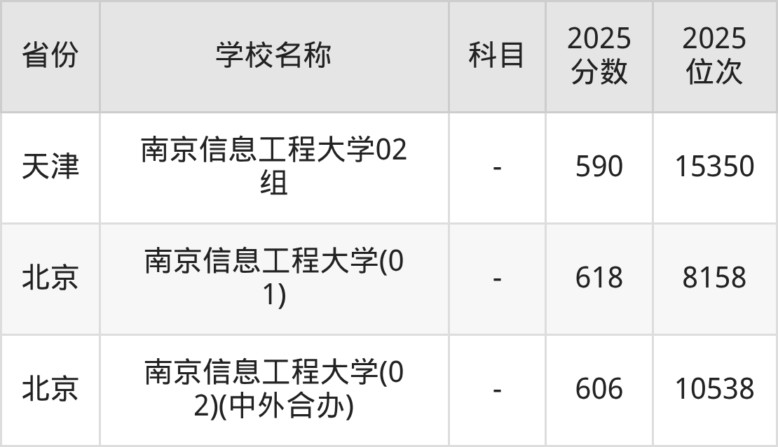 再看江苏高考2025年特招批次线,历史类是537分、物理类是519分。通过对比发现:南京信息工程大学2025年历史类最低分比特招线高32分,物理类最低分比特招线高59分。2026届江苏高考生,可通过每一次模考划线,来判断自己的成绩是否有机会被南京信息工程大学录取。