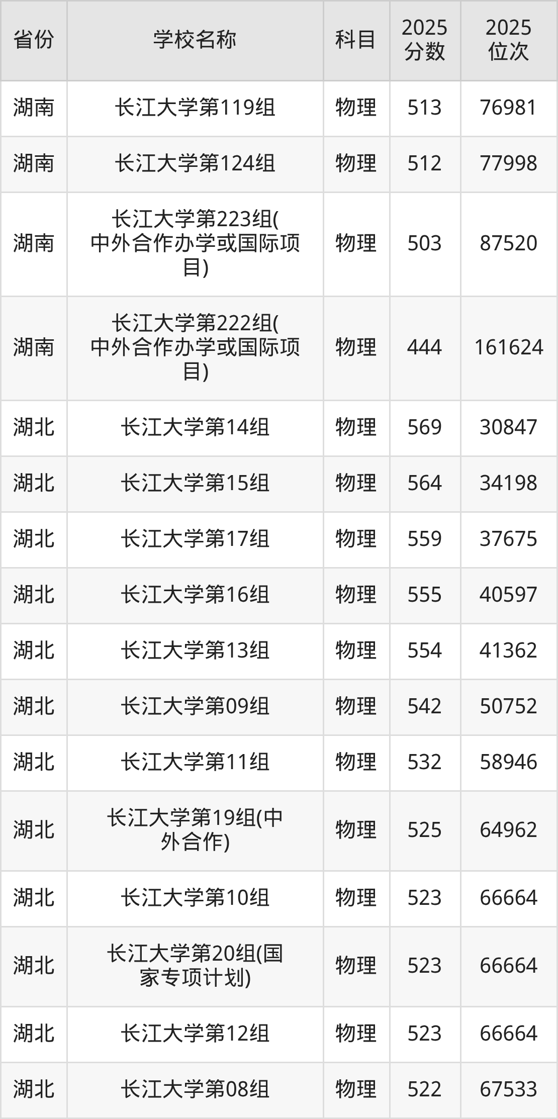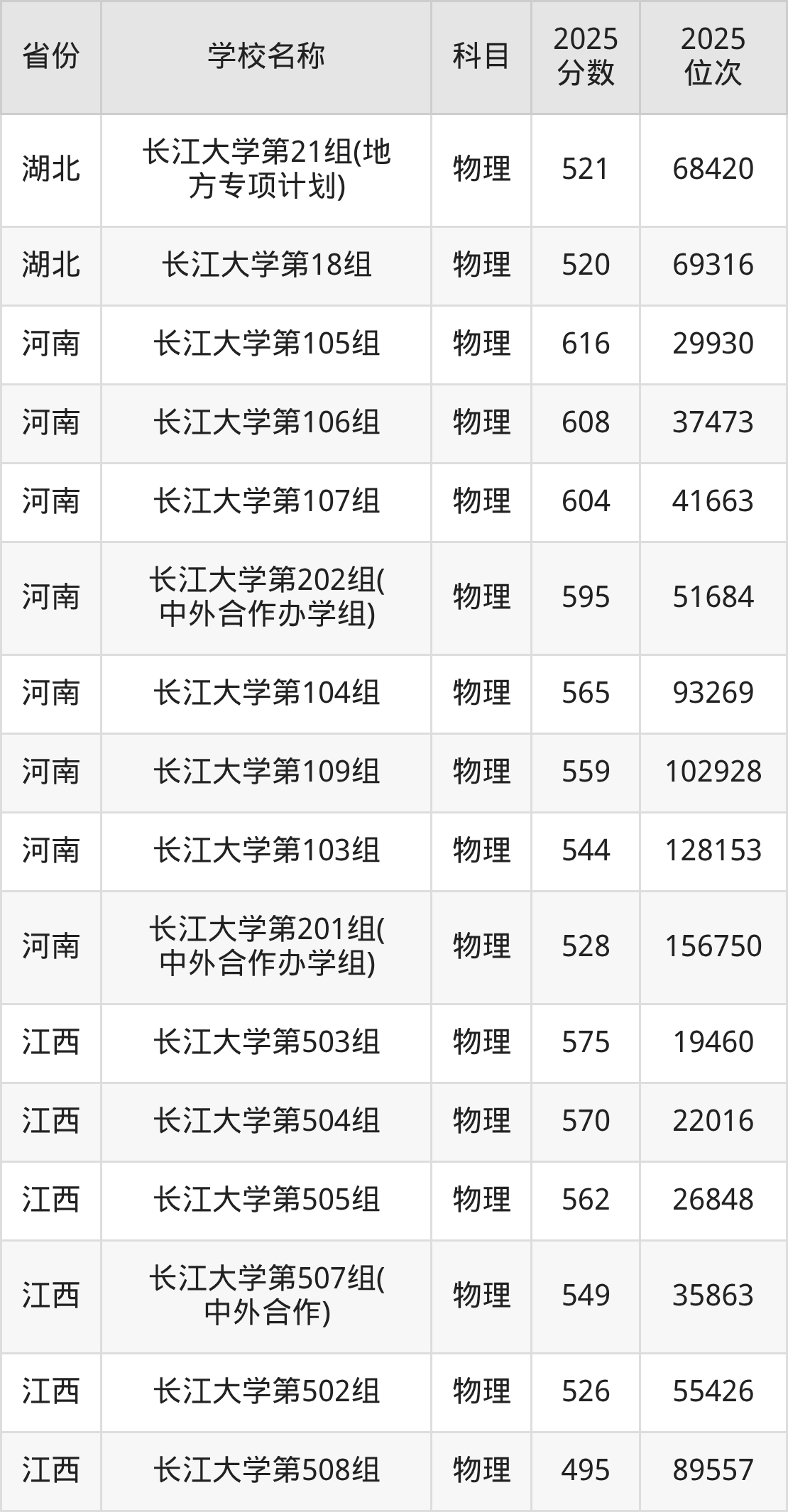 长江大学2025年有15个专业组面向湖北省内首选了物理科目的考生招生: