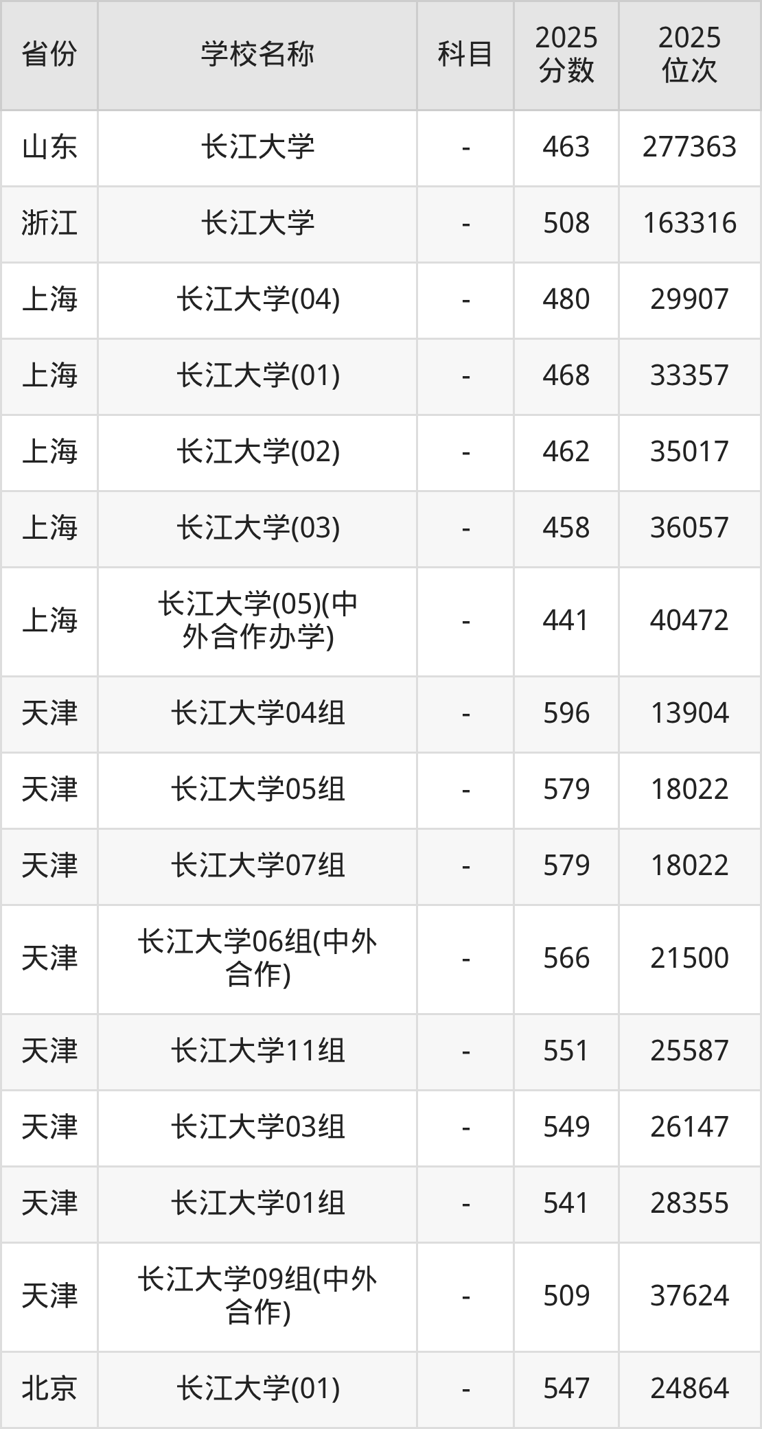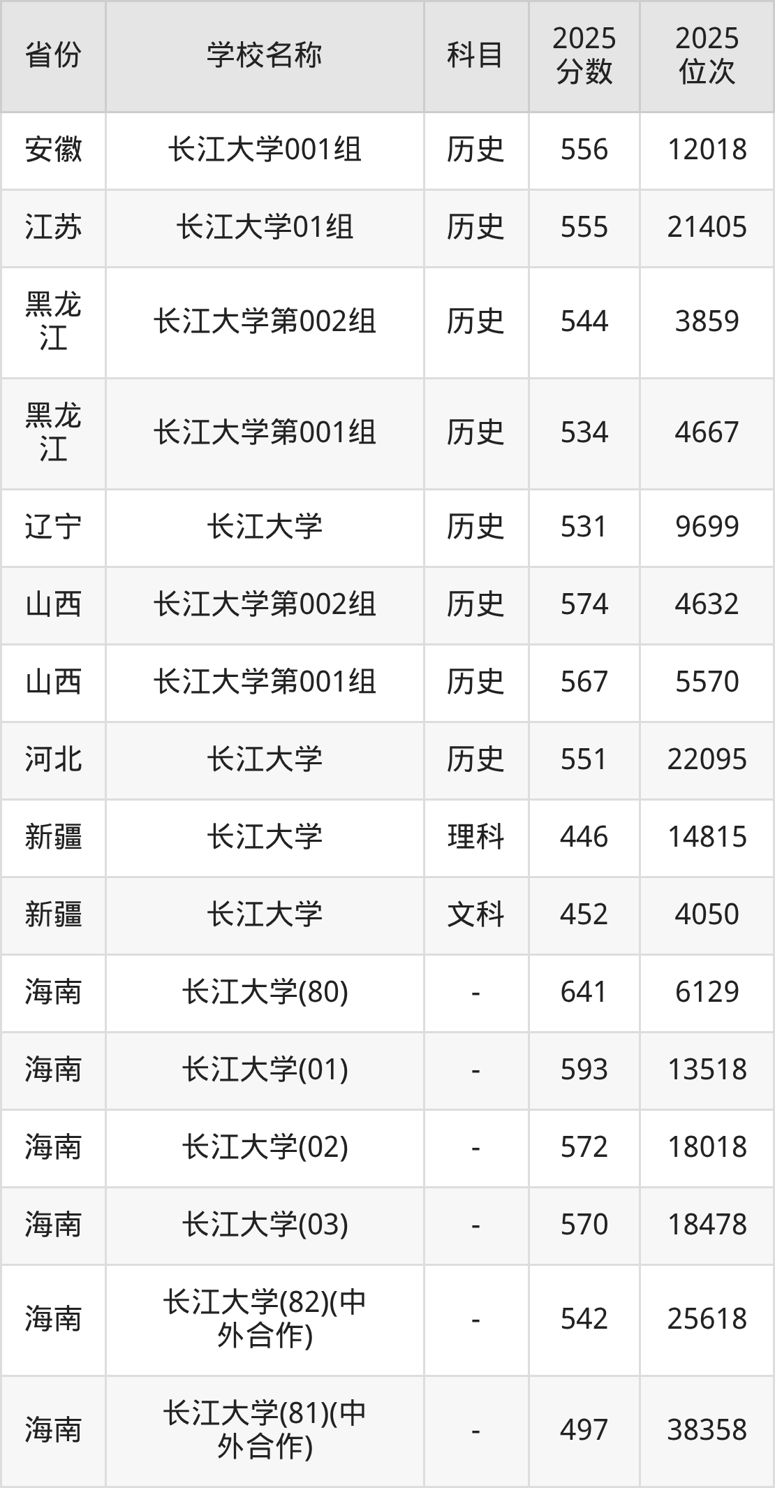 一、2025长江大学录取分数线