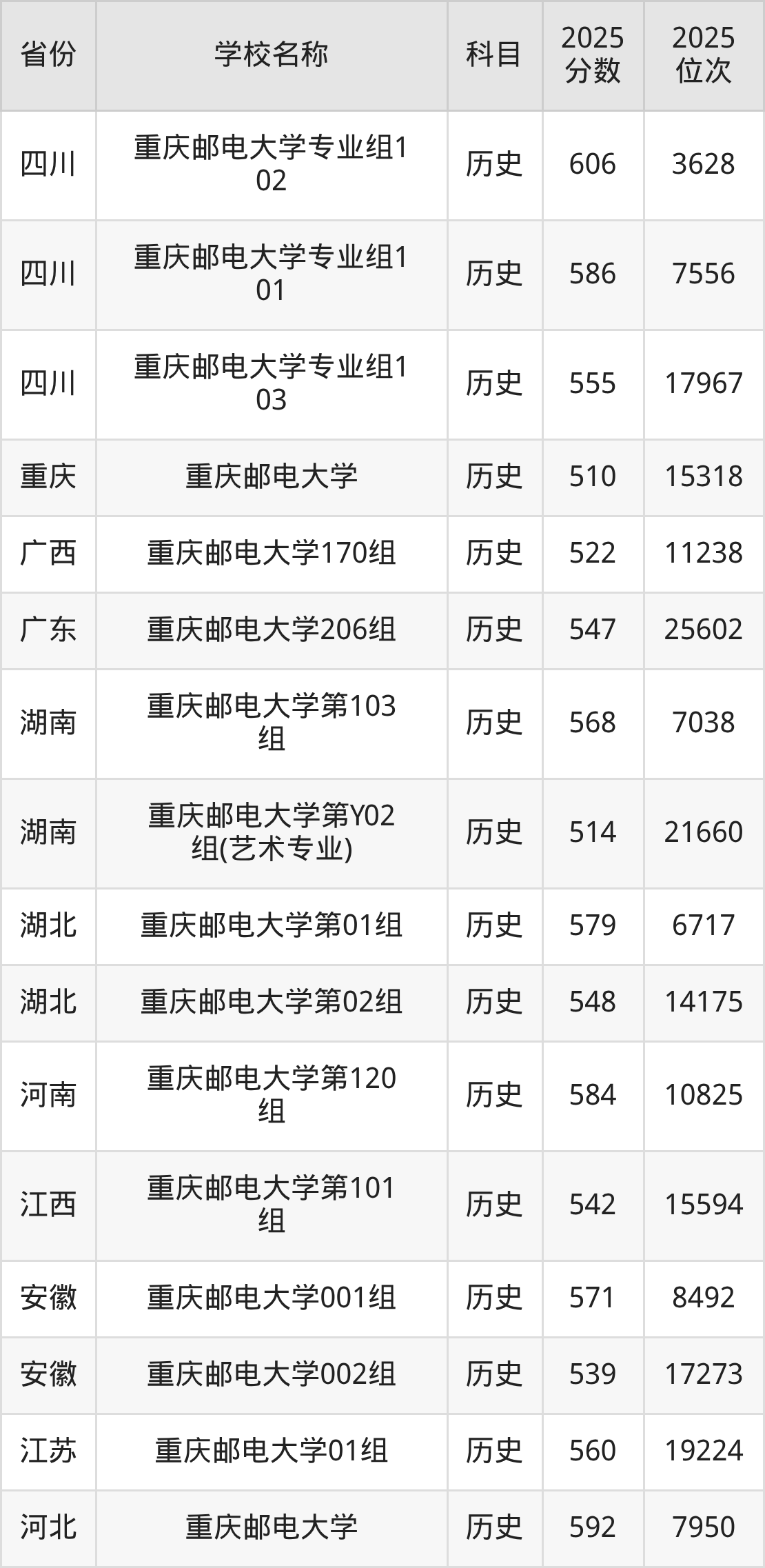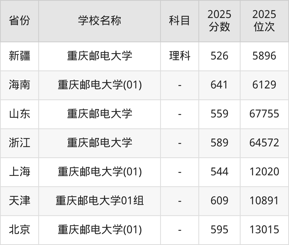 一、2025重庆邮电大学录取分数线