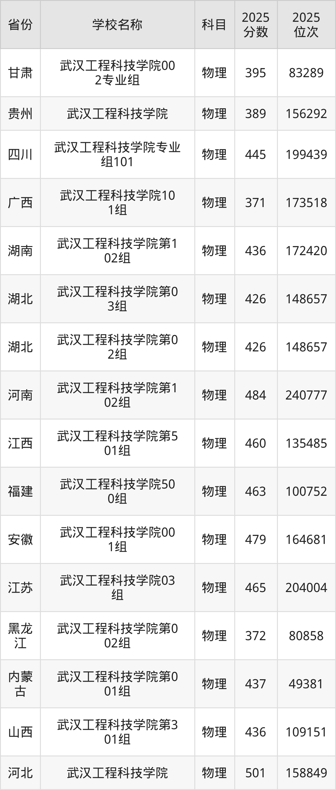 武汉工程科技学院2025年有3个专业组面向湖北省内首选了物理科目的考生招生: