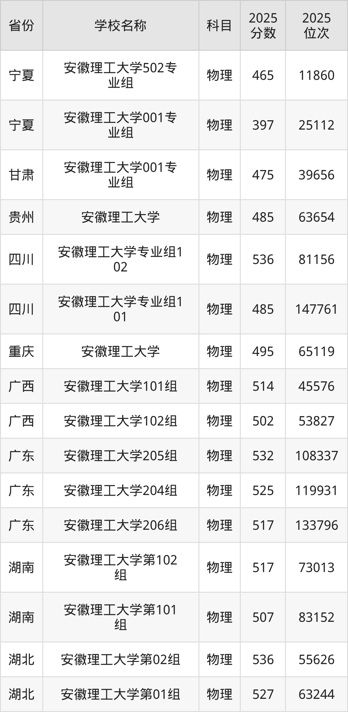 安徽理工大学2025年有2个专业组面向安徽省内首选了物理科目的考生招生: