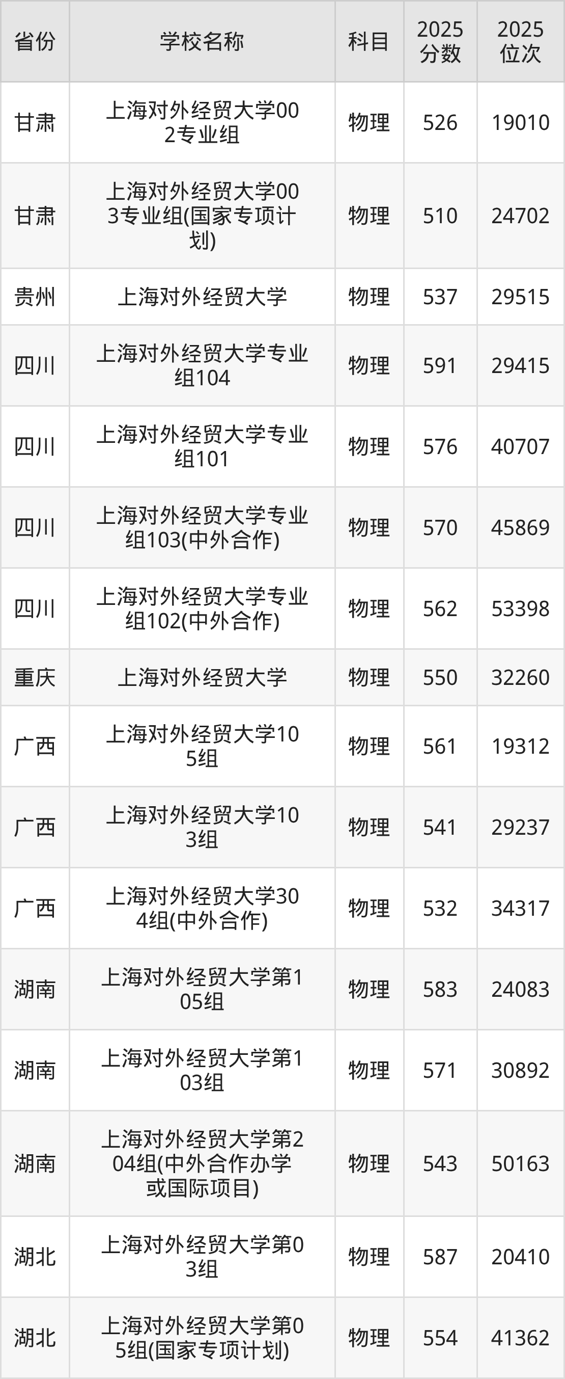 上海对外经贸大学2025年有6个专业组面向上海市内的考生招生: