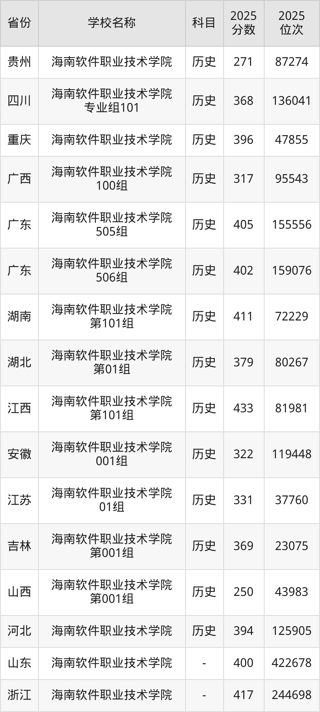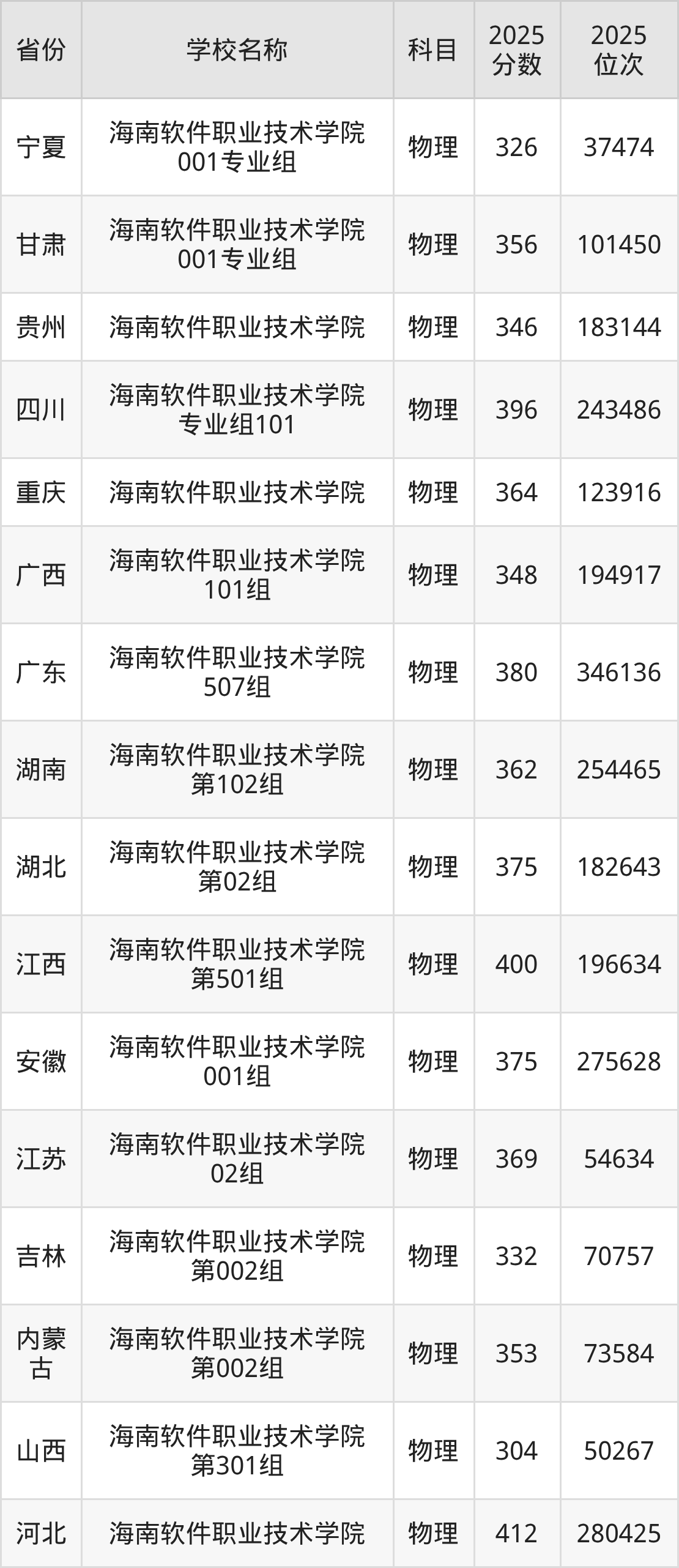 2025年海南软件职业技术学院在全国各省专科的最低录取分数线在250~433分之间。浙江高考生最低417分能上海南软件职业技术学院、河北物理类高考生最低412分能上海南软件职业技术学院……下文将展示海南软件职业技术学院在全国18个高考省份中的专科最低投档录取分汇总!