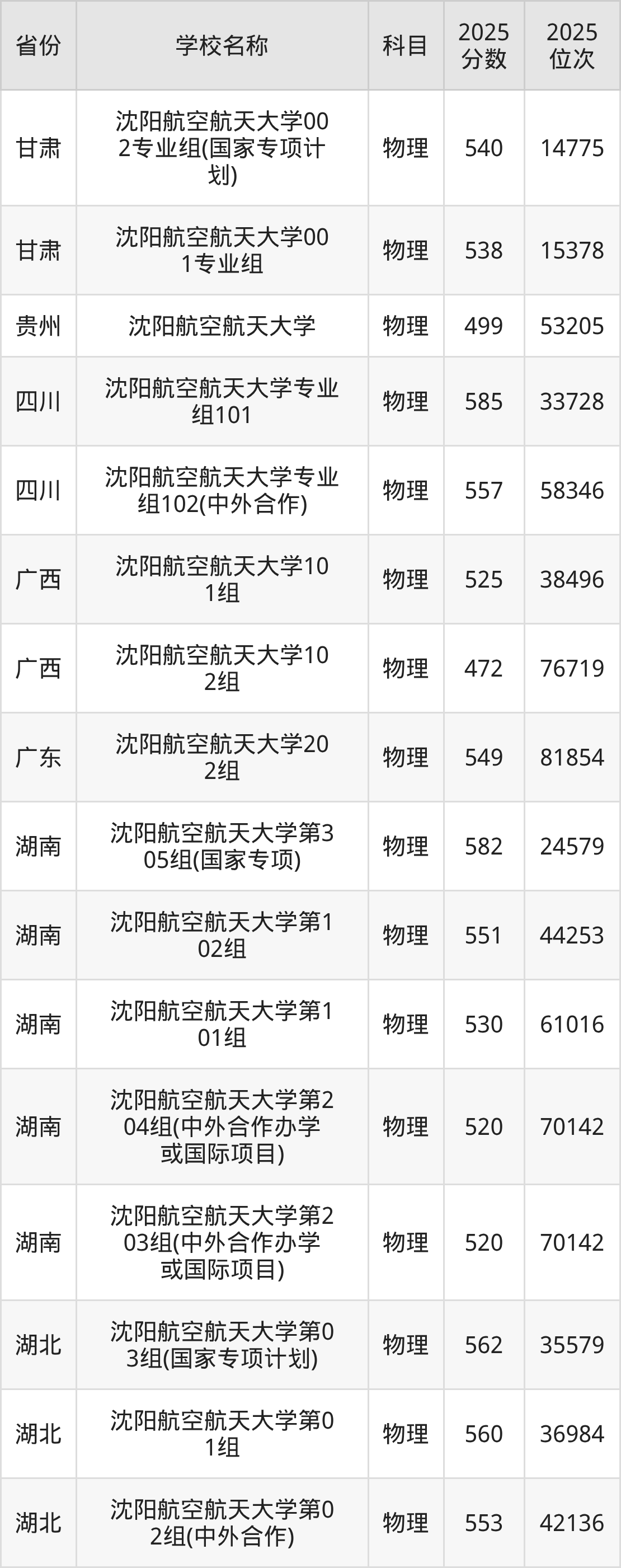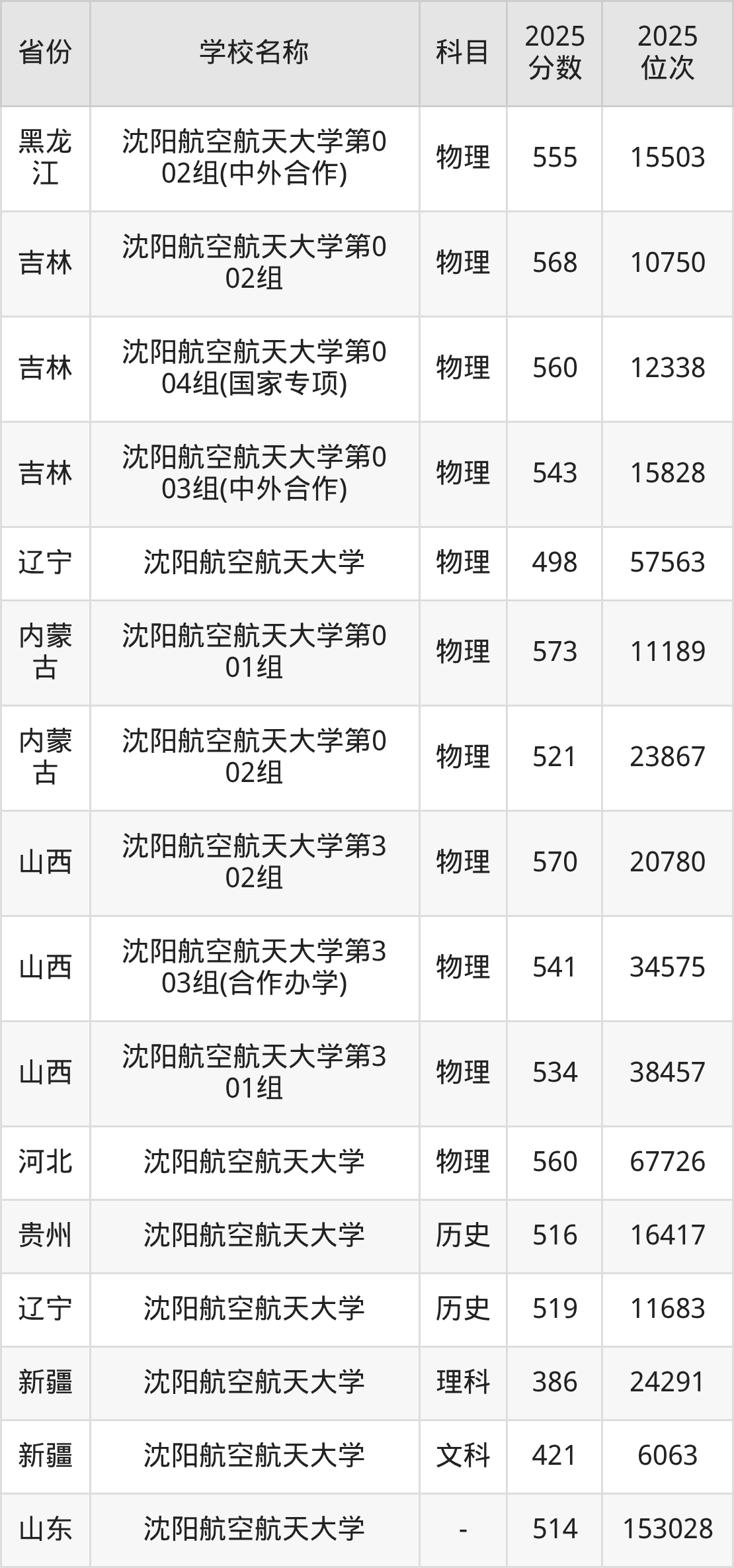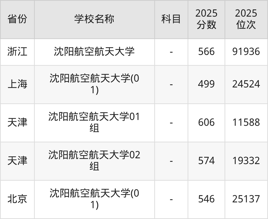 一、2025沈阳航空航天大学录取分数线