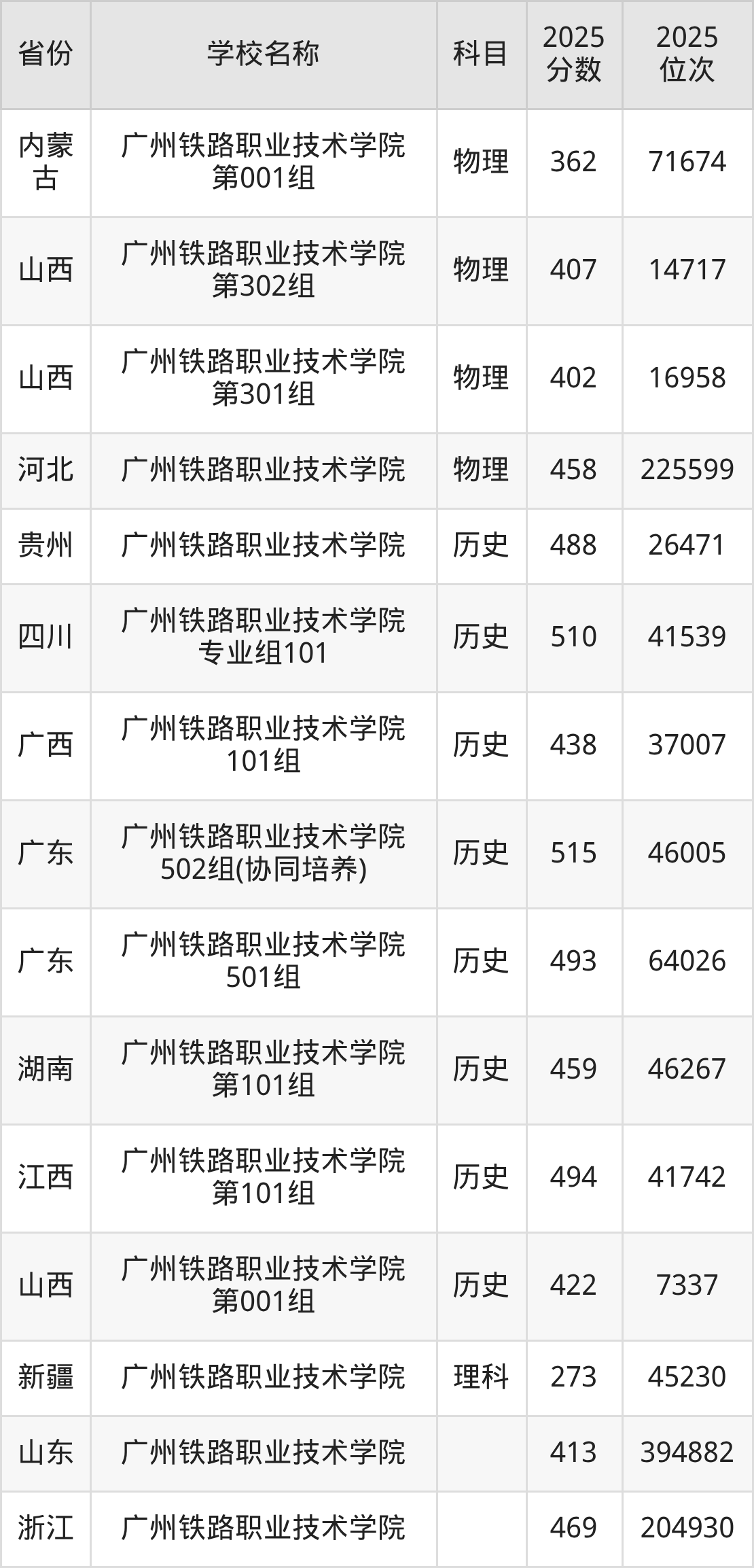 一、2025广州铁路职业技术学院录取分数线