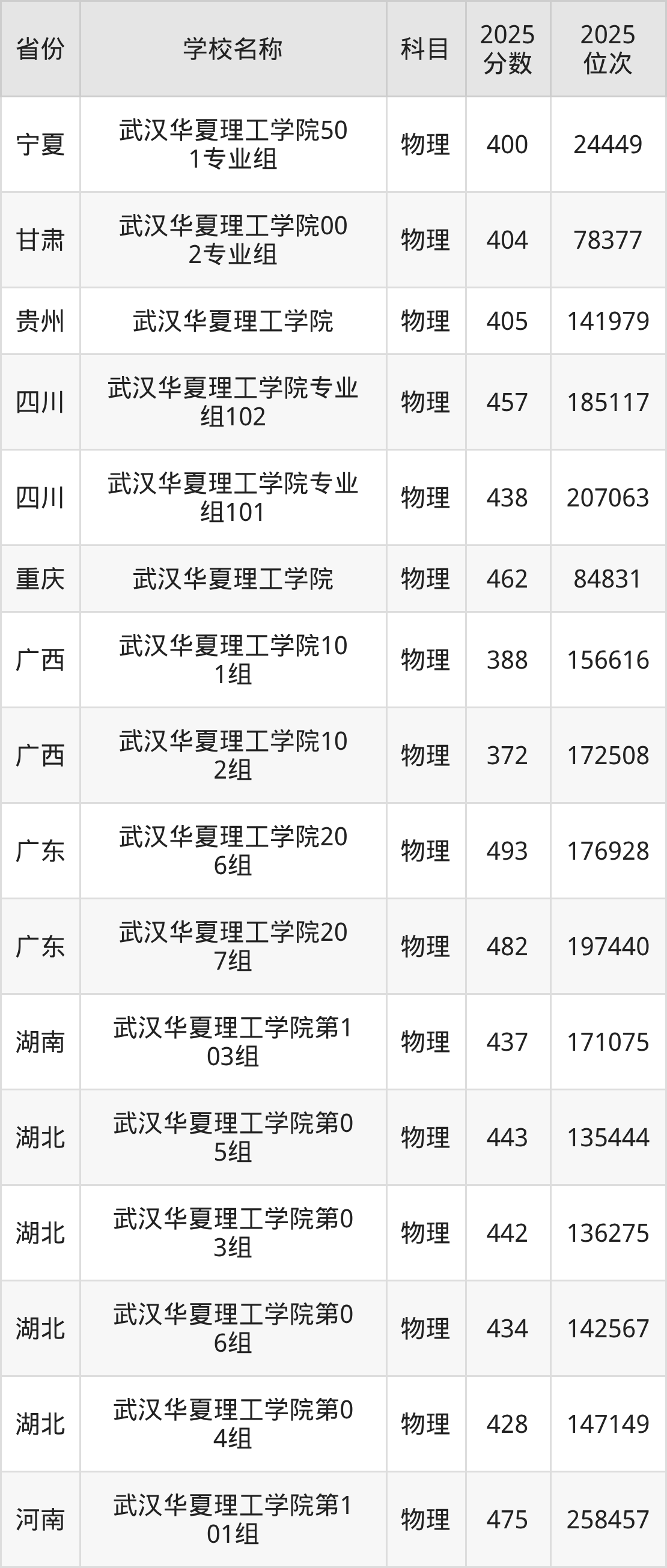 武汉华夏理工学院2025年有4个专业组面向湖北省内首选了物理科目的考生招生: