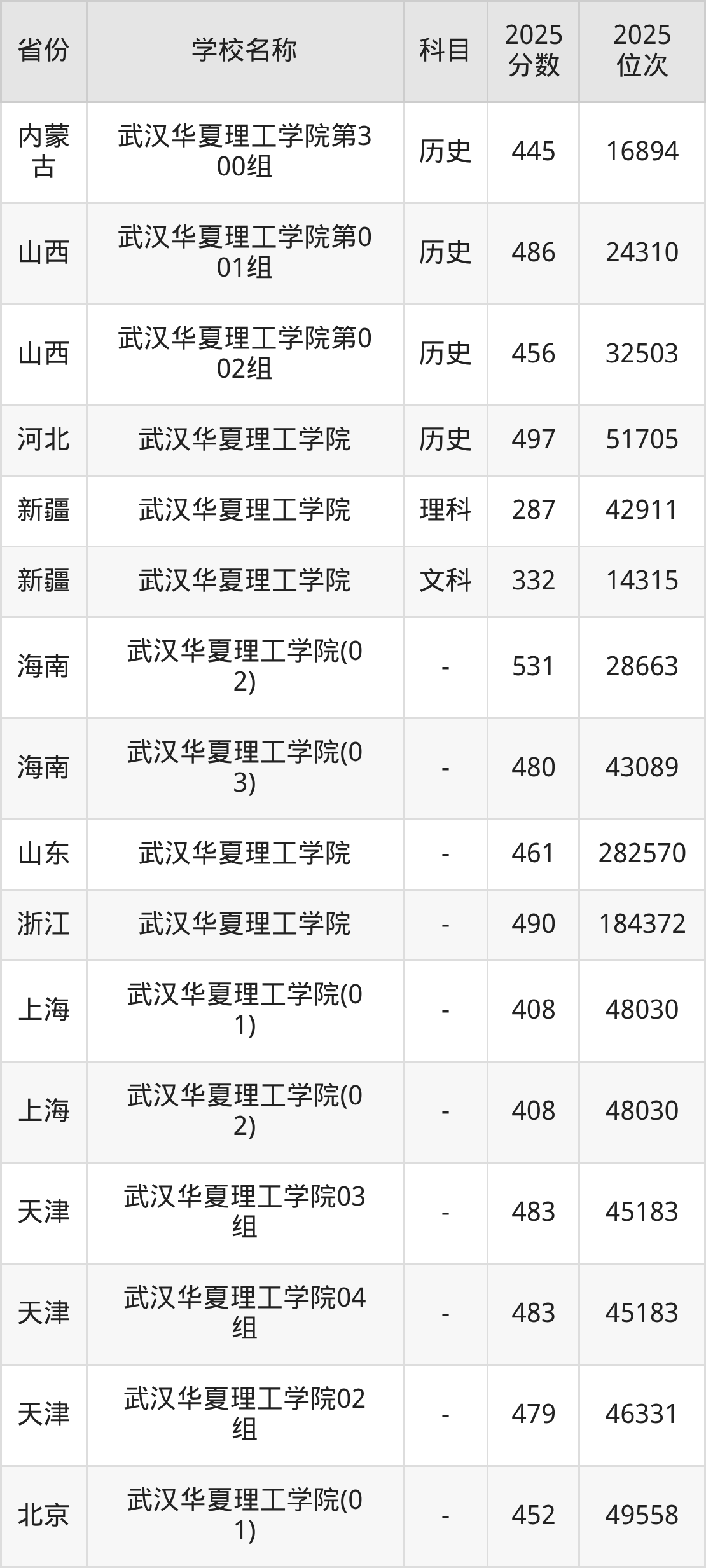 一、2025武汉华夏理工学院录取分数线