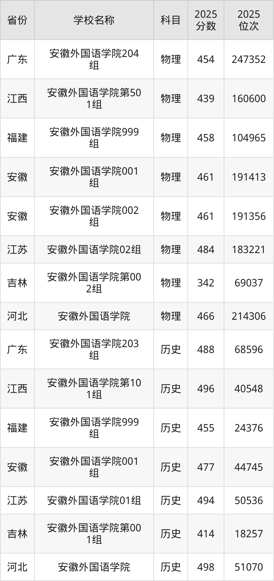 安徽外国语学院2025年有1个专业组面向安徽省内首选了历史科目的考生招生: