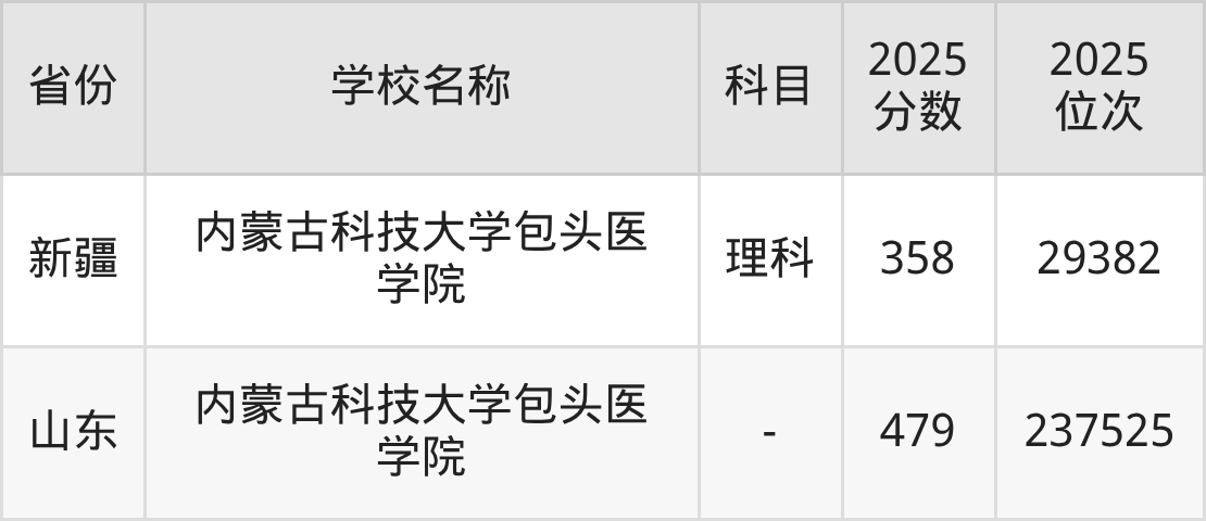 一、2025内蒙古科技大学包头医学院录取分数线