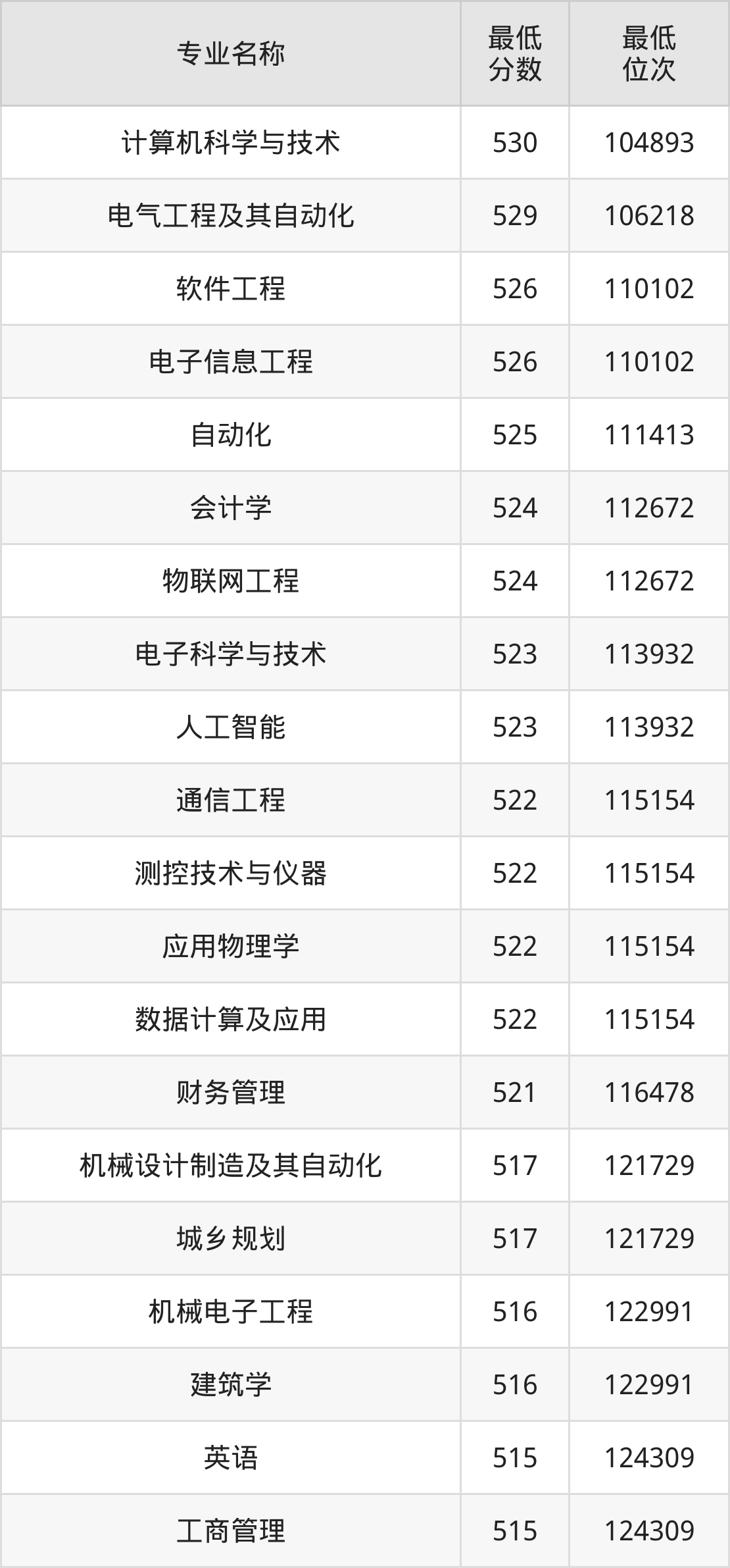 | 福建 | 物理本科批 | 专业组: 500 | 526/487/483 |
