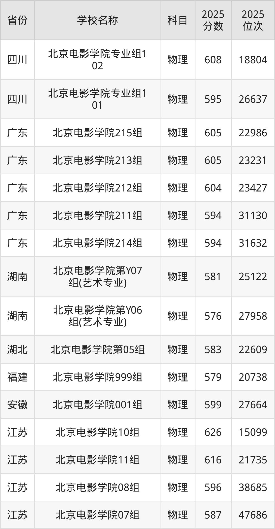 2025年北京电影学院在全国各省本科的最低录取分数线在528~626分之间。江苏物理类高考生最低626分能上北京电影学院、辽宁物理类高考生最低614分能上北京电影学院……下文将展示北京电影学院在全国20个高考省份中的本科最低投档录取分汇总!