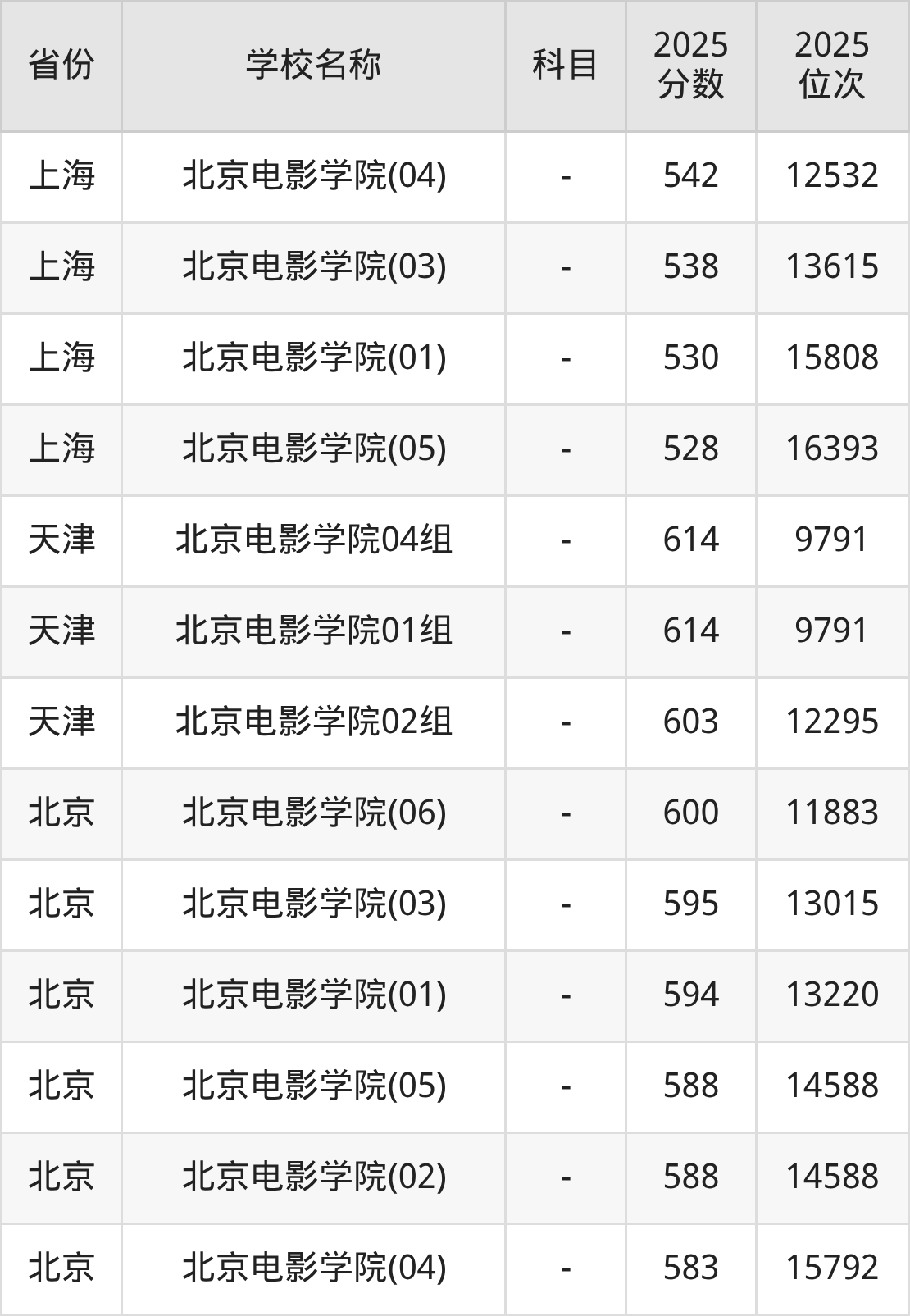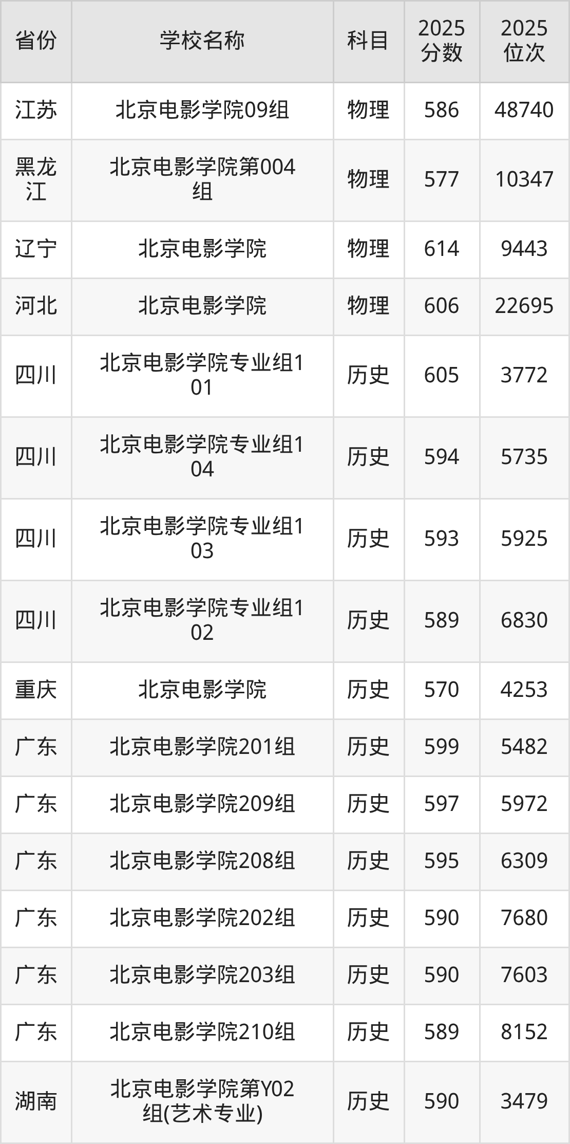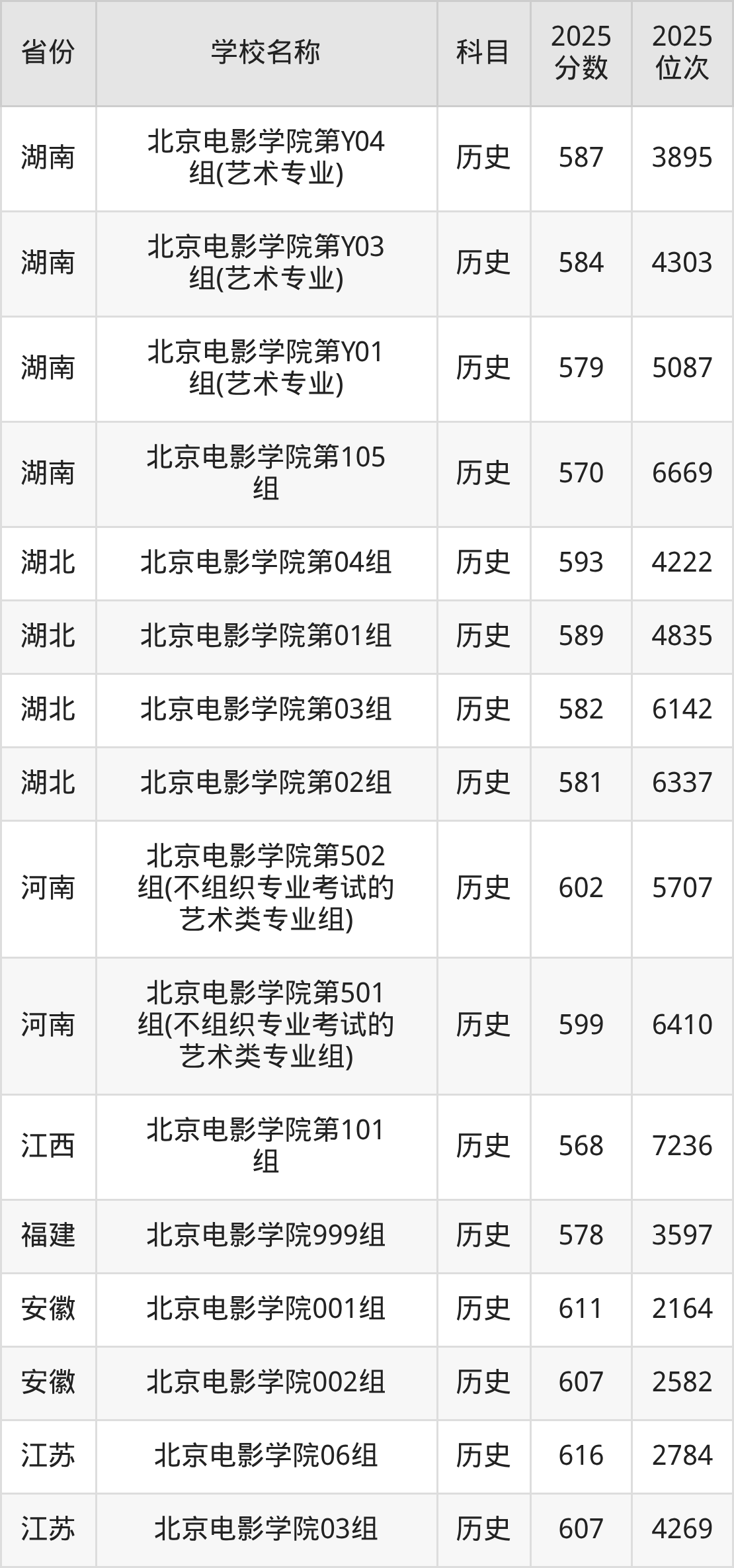北京电影学院2025年有6个专业组面向北京市内的考生招生:
