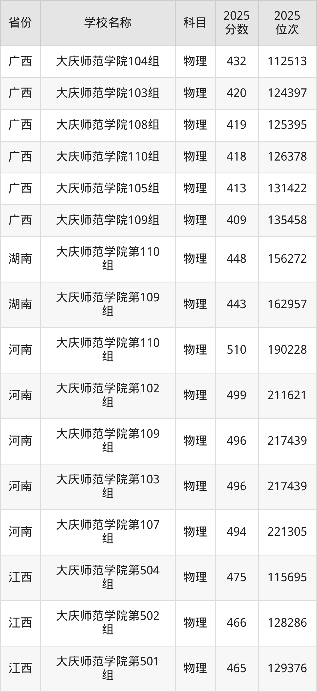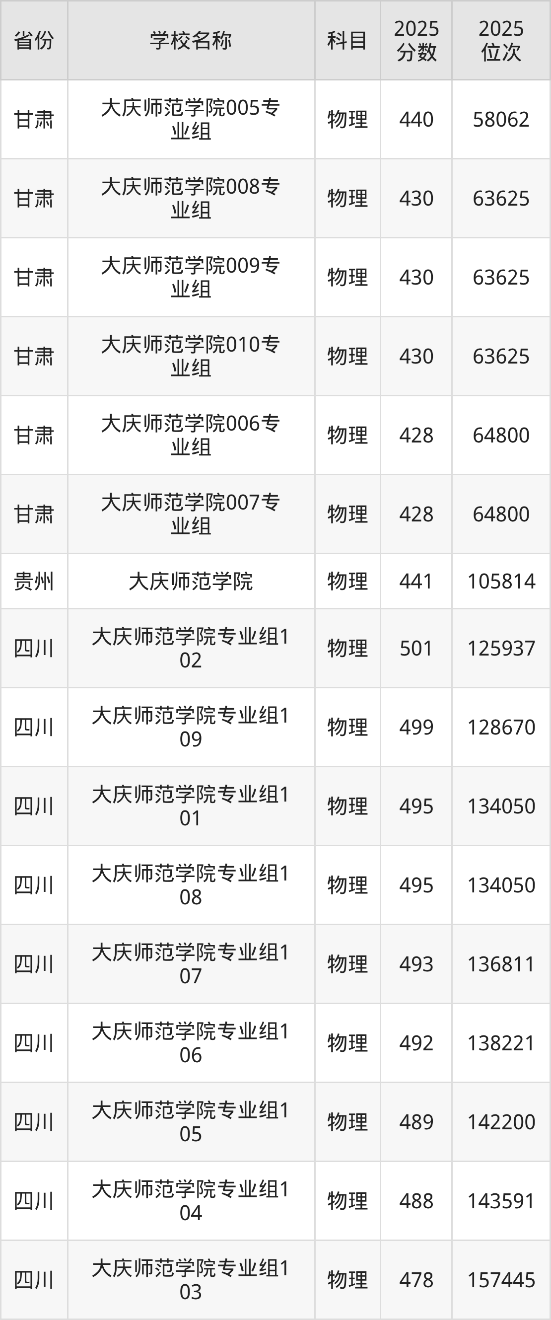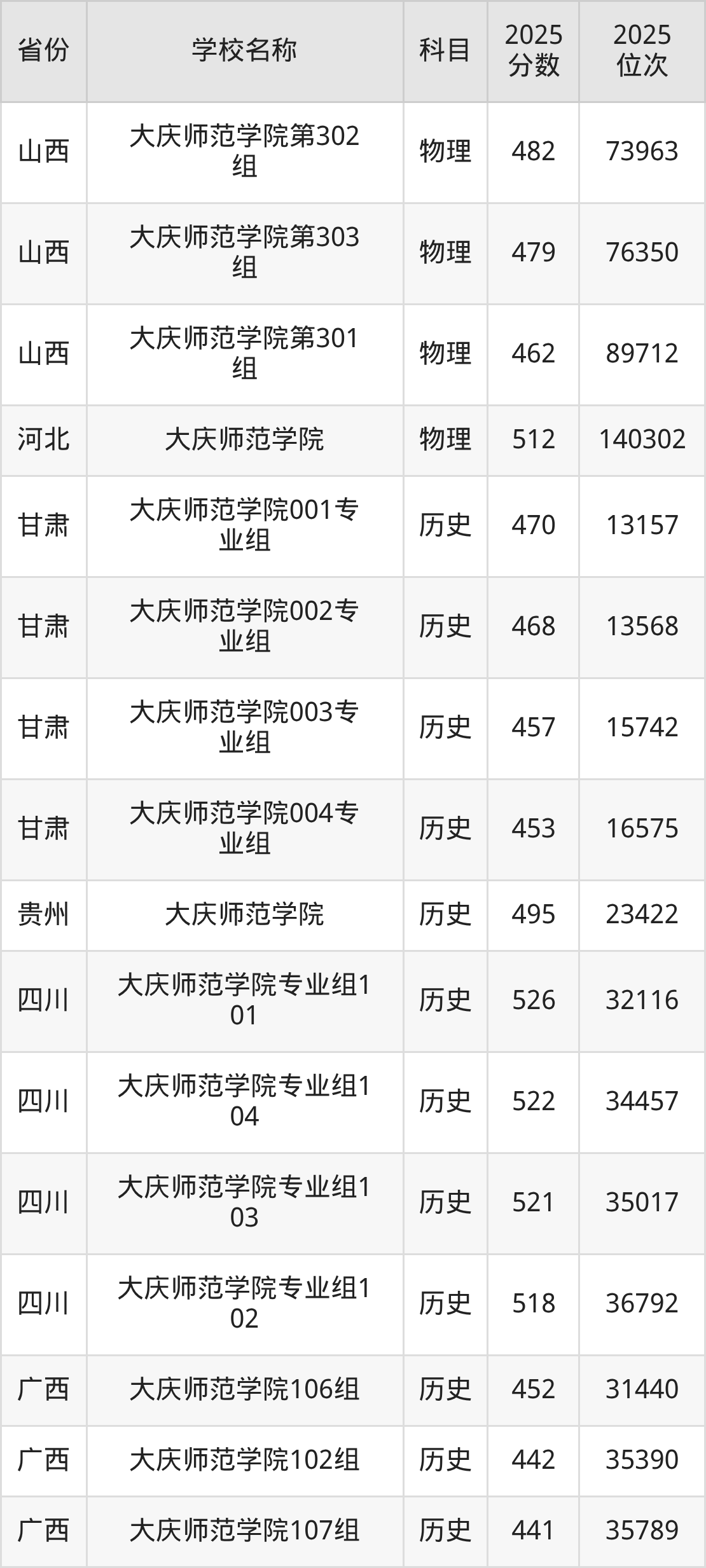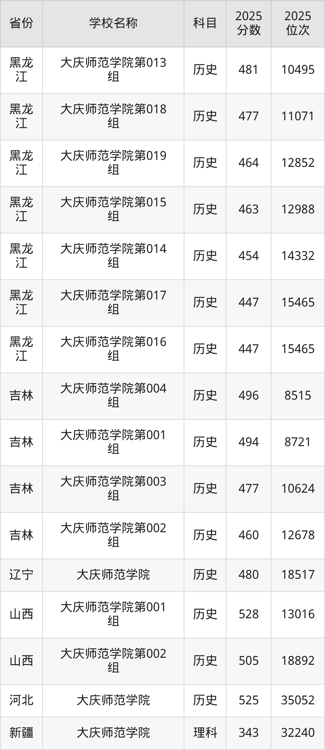 二、大庆师范学院各专业录取分数线