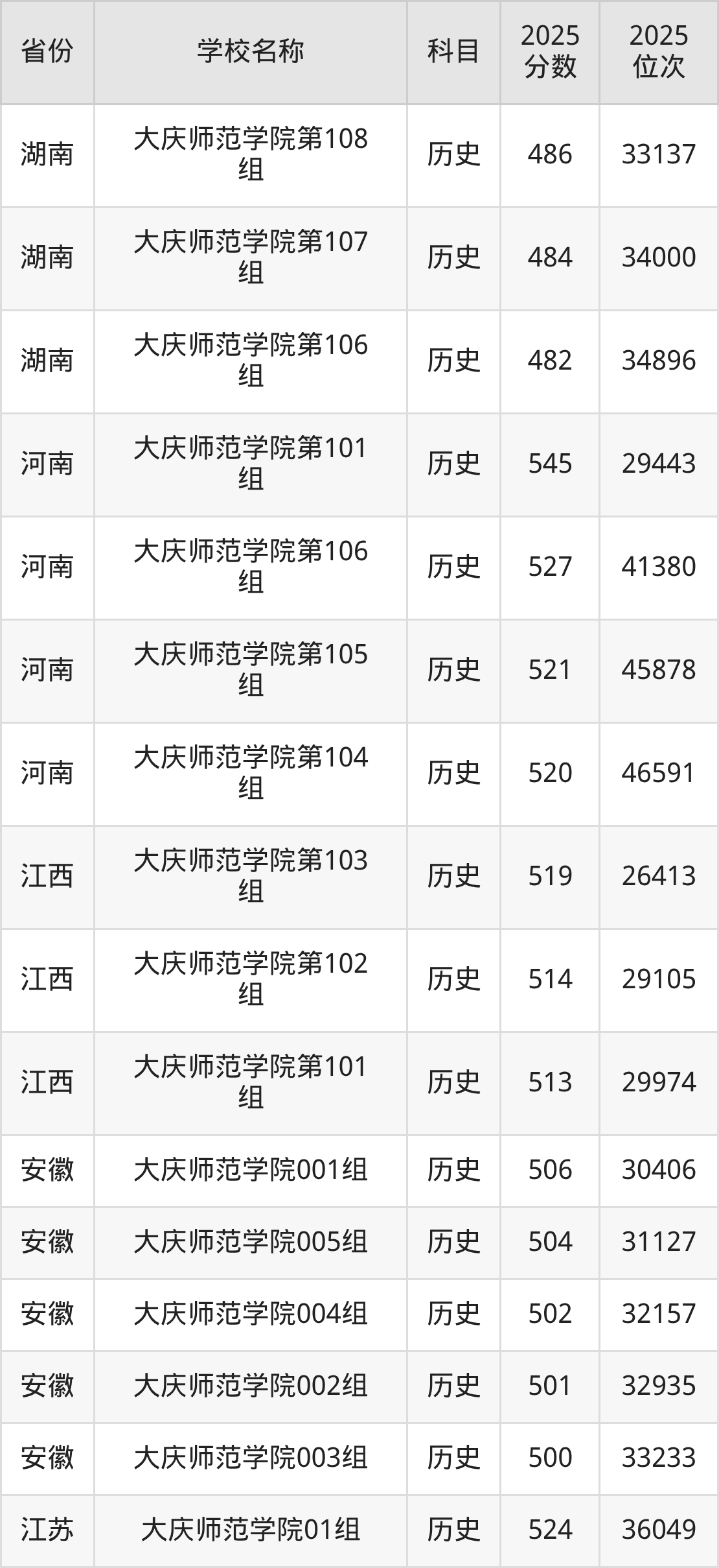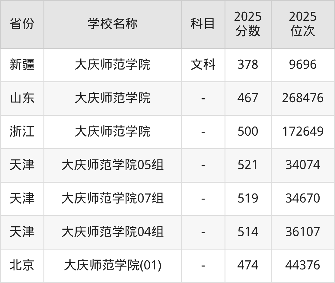 一、2025大庆师范学院录取分数线