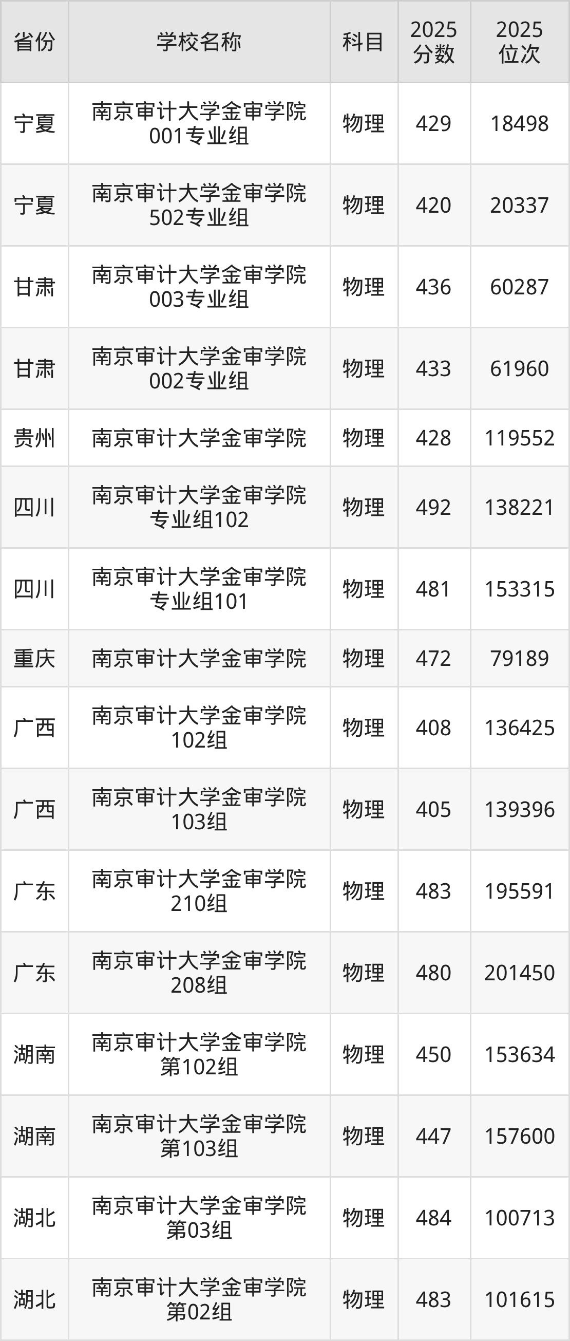 南京审计大学金审学院2025年有2个专业组面向江苏省内首选了物理科目的考生招生: