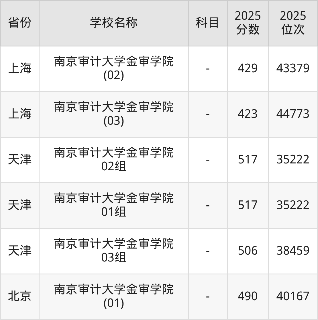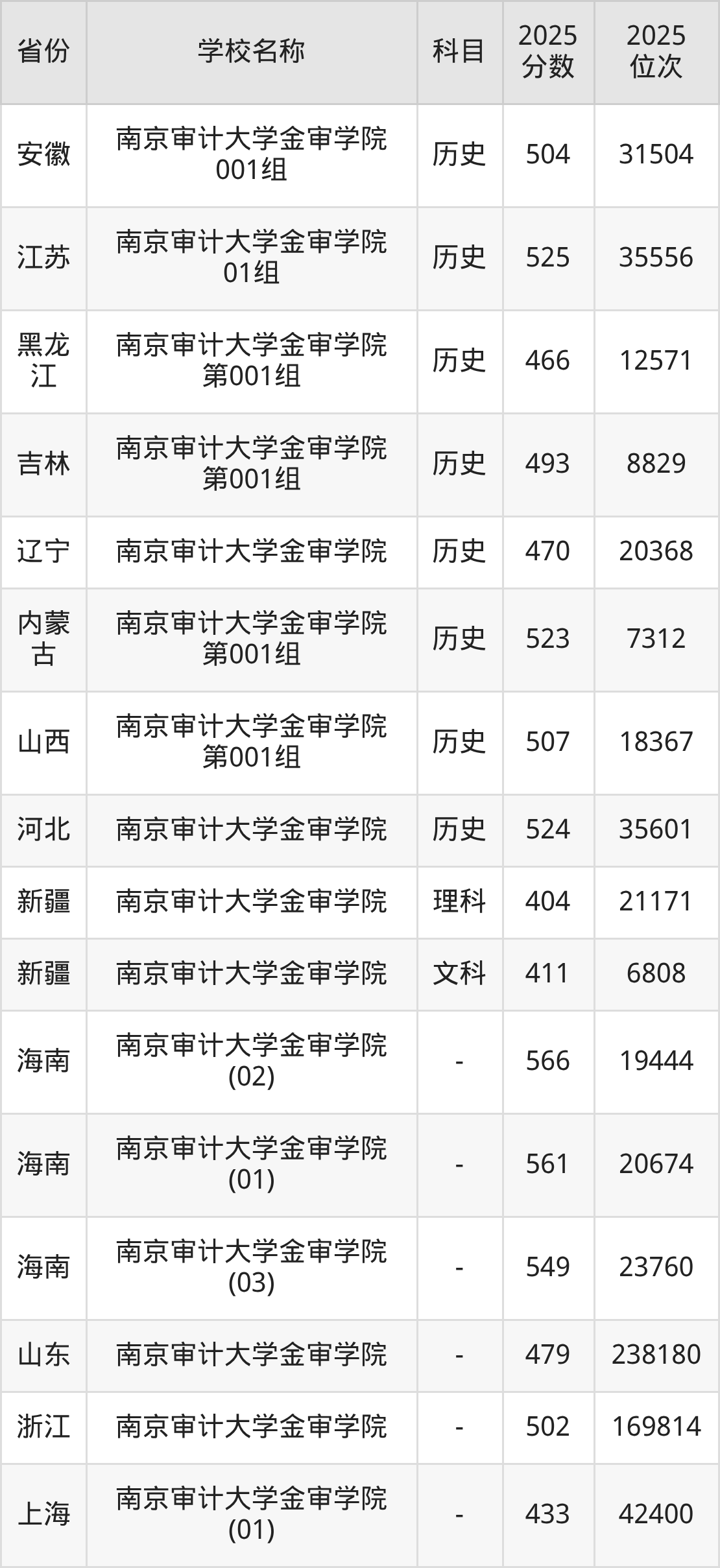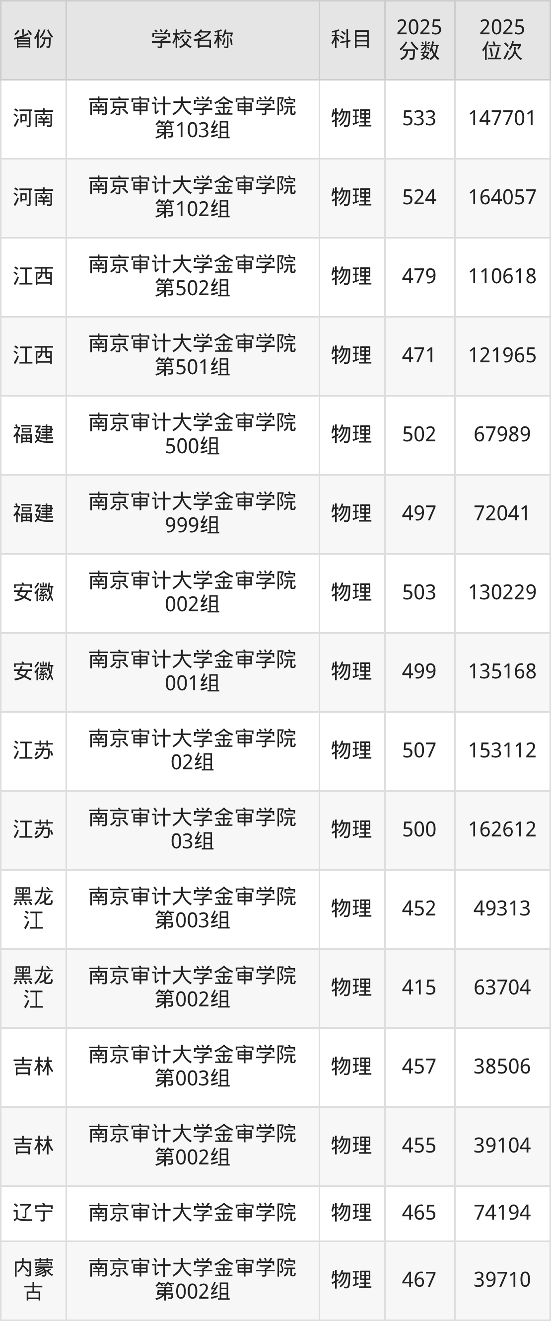 二、南京审计大学金审学院各专业录取分数线