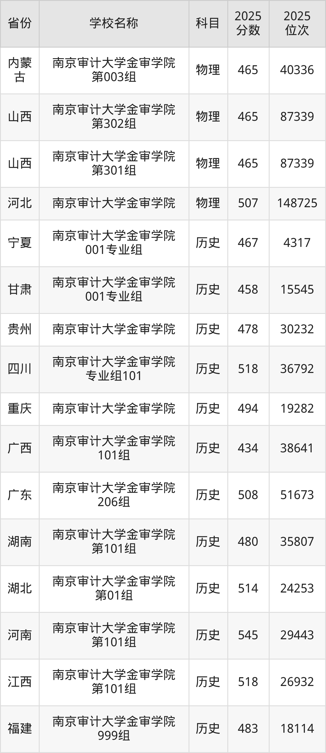 南京审计大学金审学院2025年有1个专业组面向江苏省内首选了历史科目的考生招生: