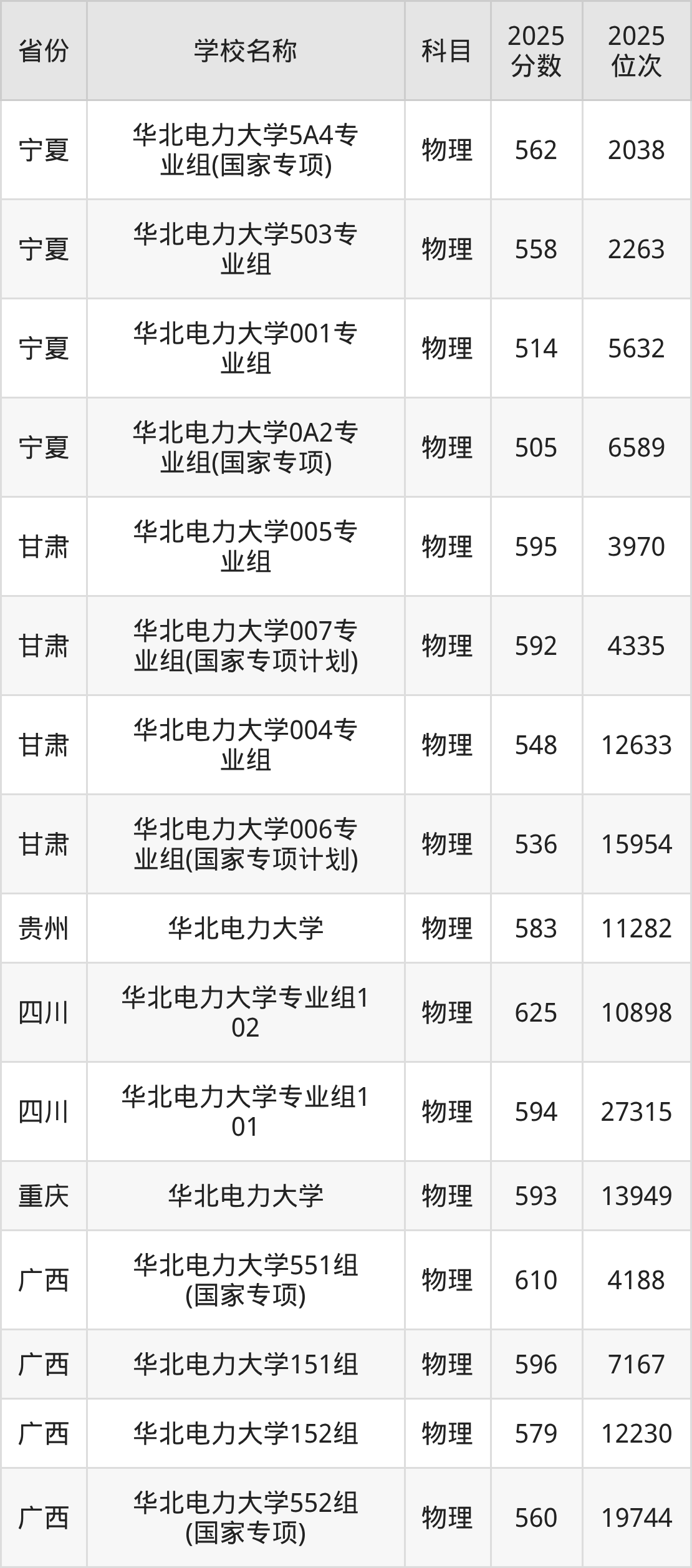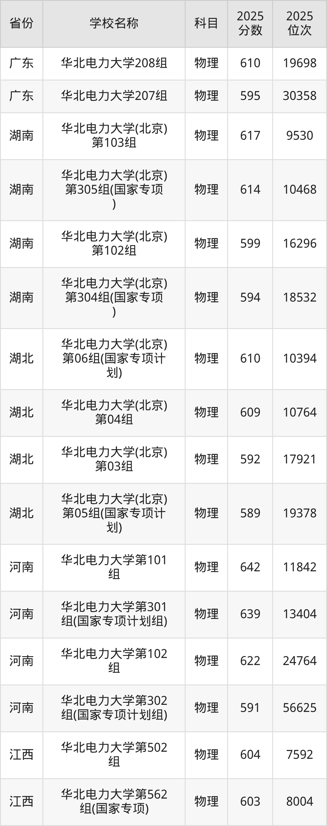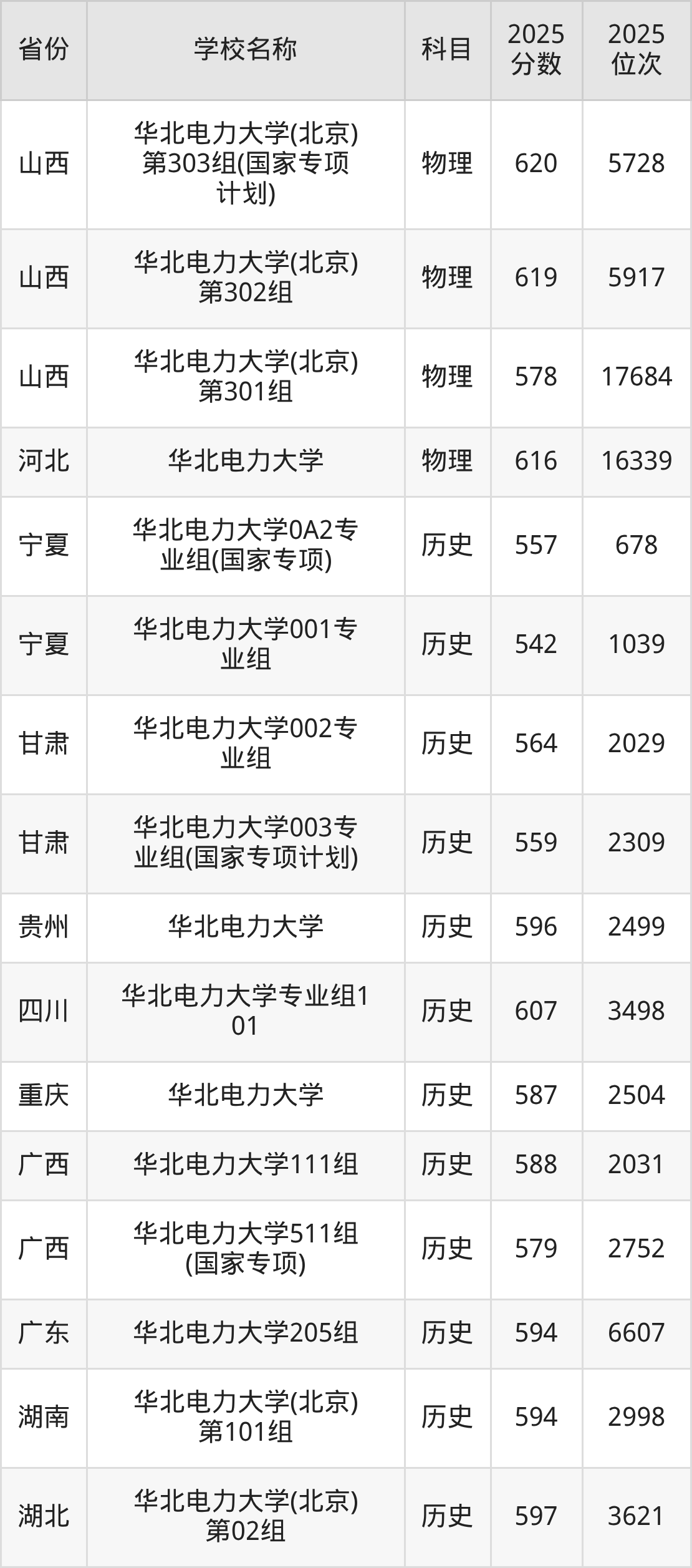 二、华北电力大学各专业录取分数线